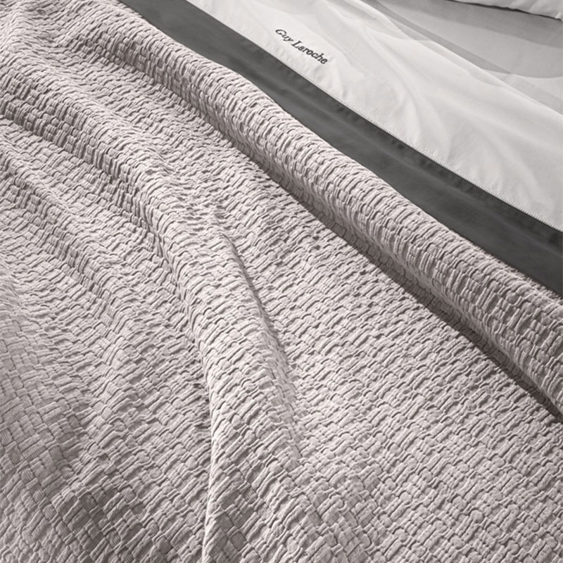 Υπέρδιπλο καλοκαιρινό κουβερτόριο από την εταιρεία Guy Laroche, με ανάγλυφο σχέδιο σε ροζ απόχρωση. Το ύφασμα είναι πετροπλυμένο από 100% βαμβάκι που κάνει το κουβερτόριο απαλό και δροσερό, ιδανικό για τους καλοκαιρινούς και ανοιξιάτικους μήνες. Θα χαρίσει στυλ και κομψότητα στην κρεβατοκάμαρά σας.