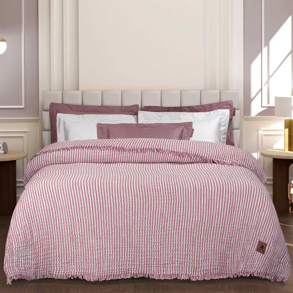 Υπέρδιπλο κουβερτόριο από την εταιρεία Nima σε μπεζ απόχρωση. Η σύνθεσή του είναι 100% βαμβάκι με αναγλύφη επιφάνεια. Είναι ιδανικό σκέπασμα για τους καλοκαιρινούς μήνες.