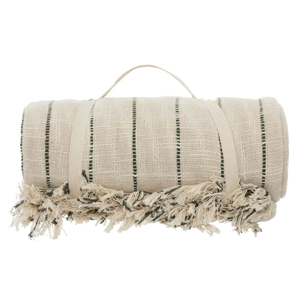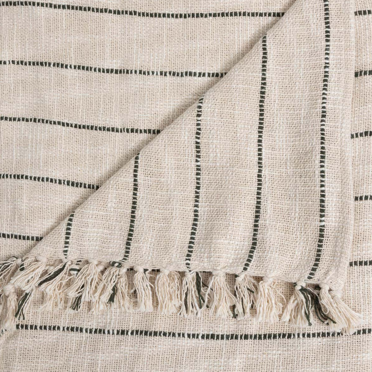 Γίγας καλοκαιρινό κουβερτόριο σε εκρού χρώμα με μαύρο ριγέ σχέδιο. Είναι κατασκευασμένο από 100% βαμβάκι. Ιδανικό καλοκαιρινό σκέπασμα που μπορεί να χρησιμοποιηθεί και σαν διακοσμητικό στοιχείο στρωμένο στο κρεβάτι σας.