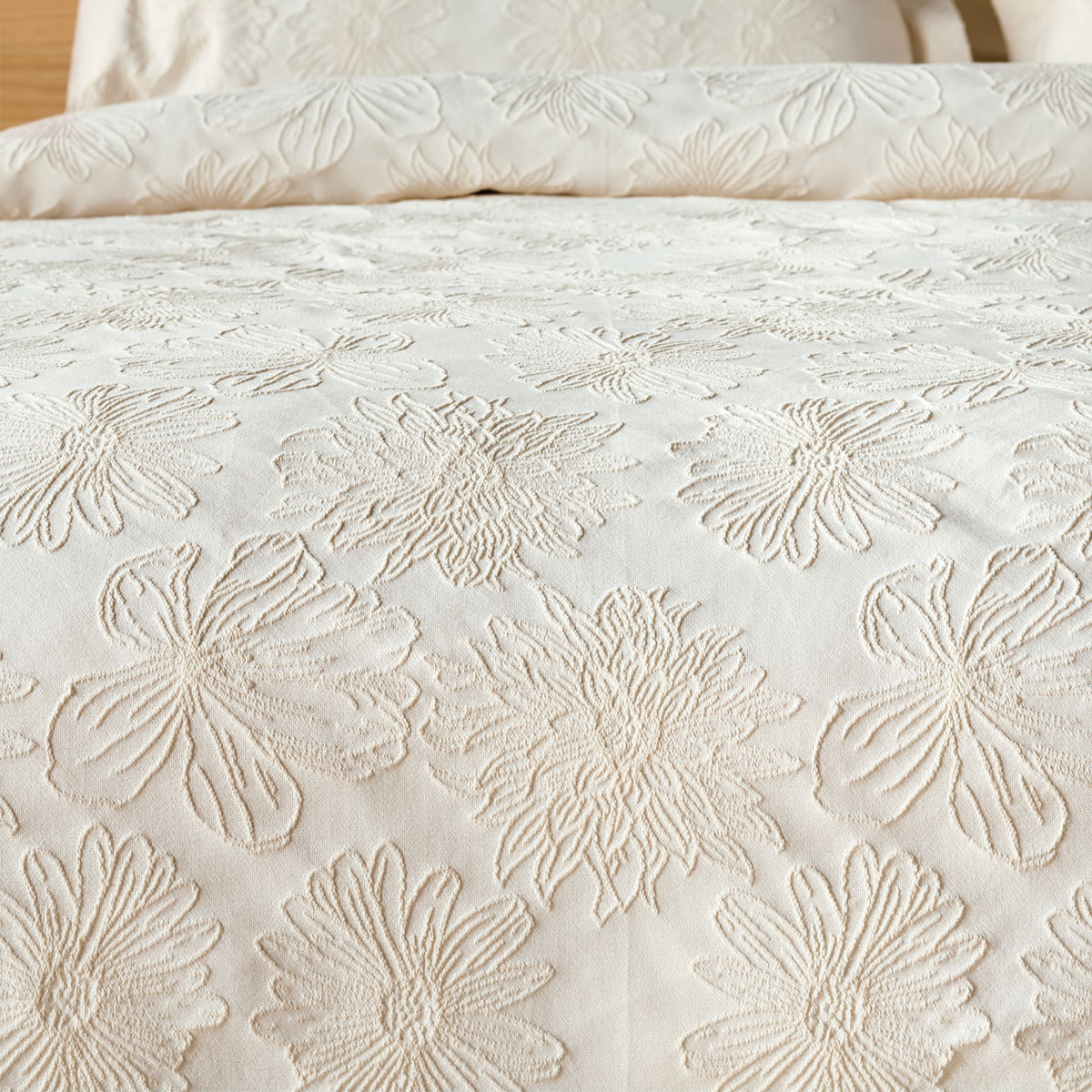 Γίγας κουβερτόριο από την εταιρεία Kentia σε εκρού απόχρωση. Η σύνθεσή του είναι 80% βαμβάκι και 20% polyester βάρους 400gsm με ζακάρ ύφανση και ανάγλυφο σχέδιο. Ιδανικό σκέπασμα για τους ανοιξιάτικους και καλοκαιρινούς μήνες. Συνδυάστε το με τα υπόλοιπα είδη της ίδιας συλλογής για ένα ολοκληρωμένο αποτέλεσμα.
