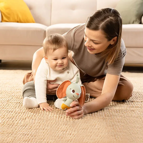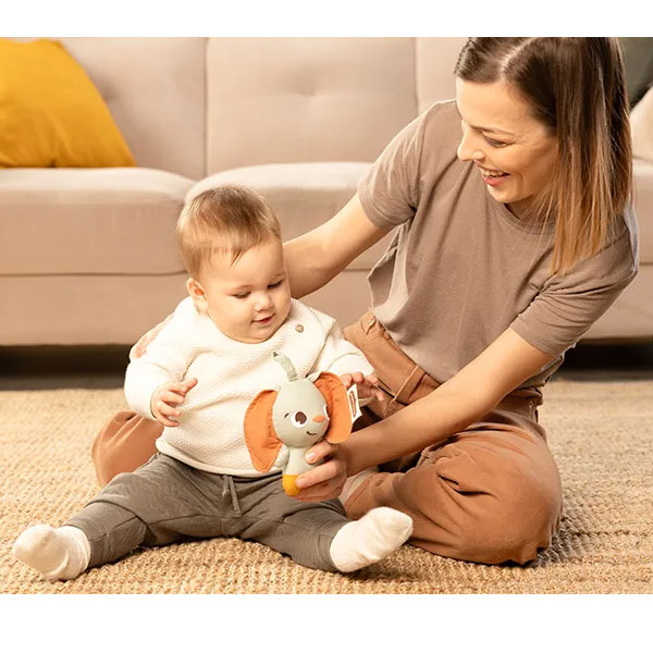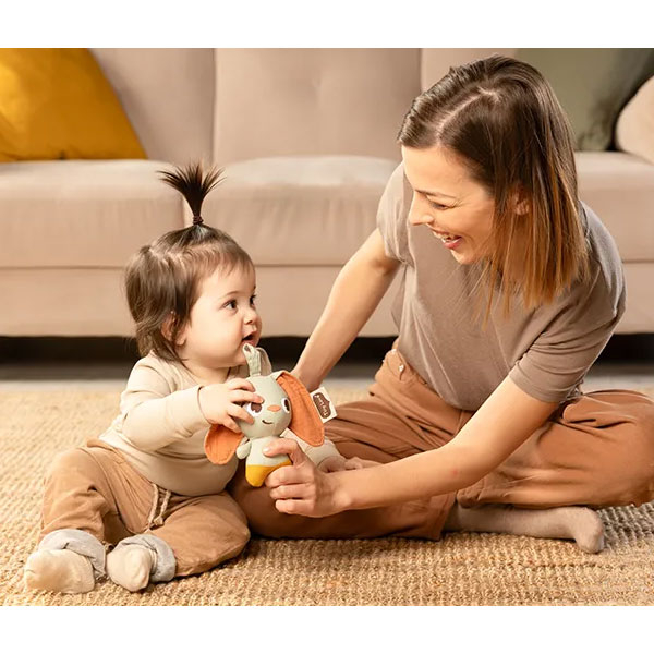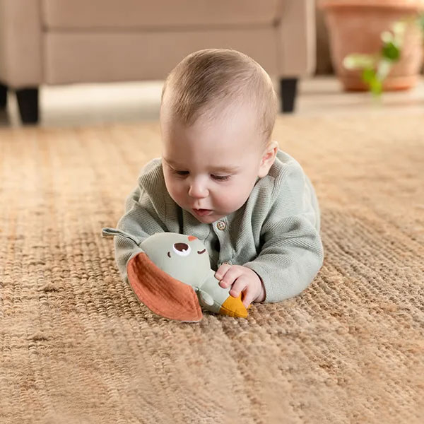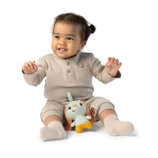 Μαλακό παιχνίδι - κουδουνίστρα από την εταιρεία Tiny Love σε βεραμάν χρώμα με ζωάκι στο σχέδιο. Είναι υφασμάτινο που το καθιστά εξαιρετικά απαλό και μαλακό. Διαθέτει θηλιά για να το κρεμάσετε. Είναι ιδανικό για τα μικρά χεράκια του μωρού σας. Κατάλληλο από την γέννηση.