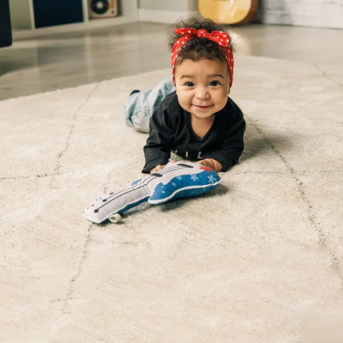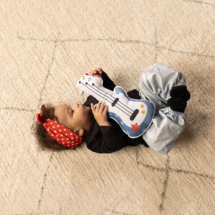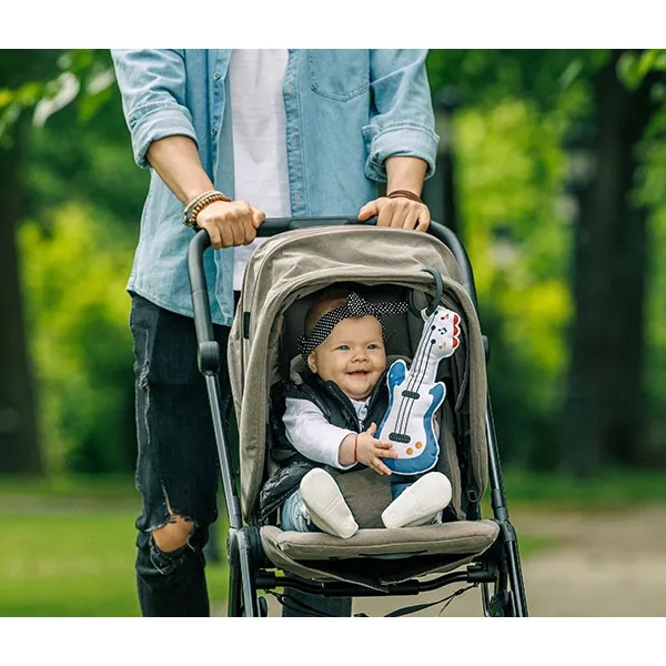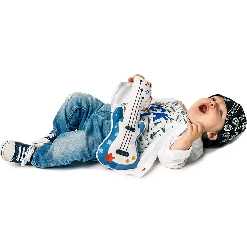 Μαλακό παιχνίδι - κουδουνίστρα από την εταιρεία Tiny Love σε λευκό-γαλάζιο χρώμα και σχήμα κιθάρας. Είναι υφασμάτινο που το καθιστά εξαιρετικά απαλό και μαλακό. Διαθέτει κρίκο για να το κρεμάσετε. Είναι ιδανικό για τα μικρά χεράκια του μωρού σας. Κατάλληλο από την γέννηση.