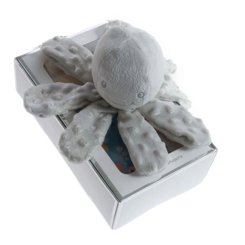 Μαλακό παιχνίδι-κουδουνίστρα από την εταιρεία Gamberritos σε γκρι χρώμα και σχήμα χταπόδι. Είναι κατασκευασμένη από 100% πολυεστέρα. Ιδιαίτερα μαλακή θα τη λατρέψει το μικρό σας. Τα πολλά πλοκάμια του χταποδιού παρέχουν μια παιχνιδιάρικη και διασκεδαστική αίσθηση, δίνοντας στο μωρό σας πολλές επιλογές για να τα αρπάξει και να τα εξερευνήσει. Κατάλληλο για ηλικίες από 0+ μηνών. Σε συσκευασία δώρου.