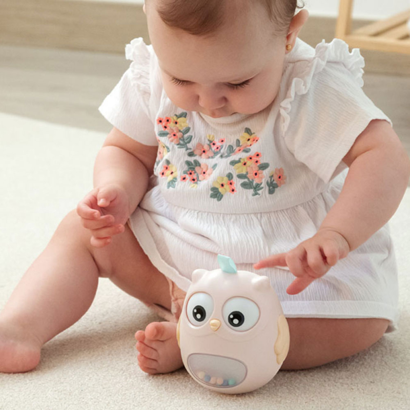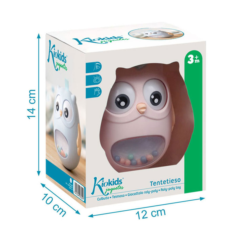 Κουδουνίστρα σε απαλό ροζ χρώμα και σχέδιο κουκουβάγια από την εταιρία Kiokids. Κατασκευασμένη από πλαστικό υλικό. Η κουδουνίστρα ταλαντεύεται, κινείται χωρίς να σταματά και βγάζει έναν διασκεδαστικό ήχο που θα κρατήσει το ενδιαφέρον του μωρού σας αμείωτο. Τα μάτια του κινούνται καθώς ταλαντεύεται από άκρη σε άκρη και μπρος-πίσω. Είναι ιδανικό για τα μικρά χεράκια του μωρού σας. Διαθέτει υφασμάτινο λουράκι για να μπορείτε να το κρεμάσετε παντού. Κατάλληλο για ηλικίες 3+ μηνών.