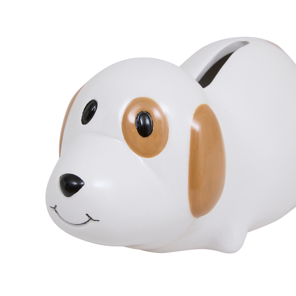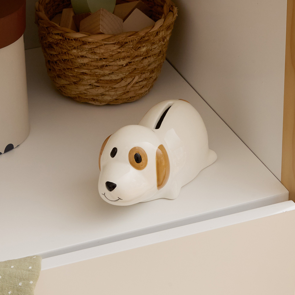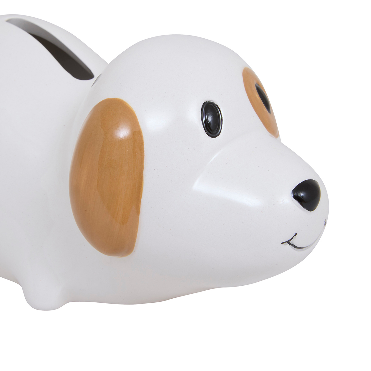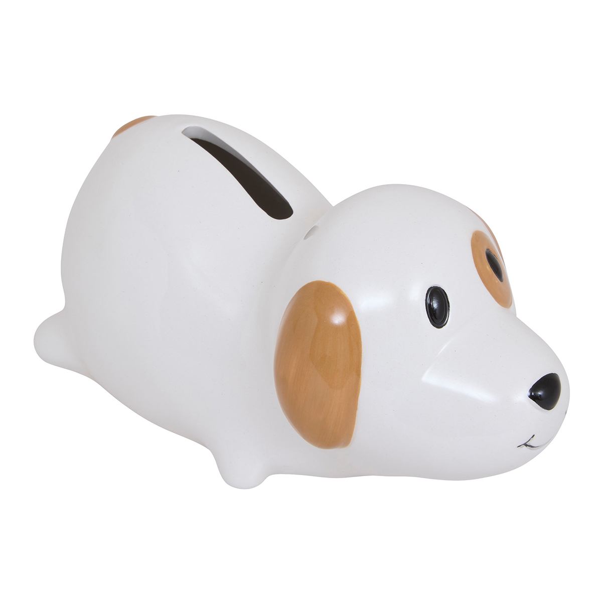 Όμορφος κουμπαράς για τις πρώτες παιδικές οικονομίες. Είναι κατασκευασμένος από κεραμικό υλικό σε λευκό χρώμα με μπεζ και μαύρες λεπτομέρειες και σχέδιο σκυλάκι. Στο επάνω μέρος διαθέτει εγκοπή για να πέφτουν τα χρήματα. Συνδυάστε τον με τα υπόλοιπα είδη της ίδιας συλλογής για ένα ολοκληρωμένο αποτέλεσμα.