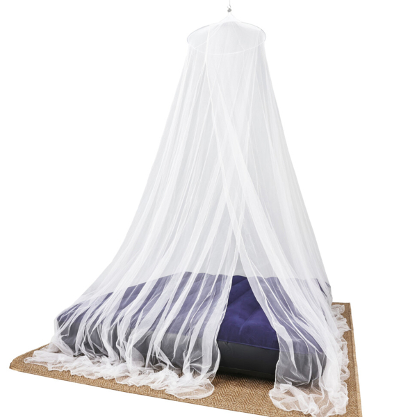 Κουνουπιέρα διπλή με τούλι σε λευκό χρώμα. Η σύνθεση της είναι 100% polyester. Είναι ιδανική για να σας προστατεύει από τα ενοχλητικά έντομα και τα κουνούπια ώστε να μπορείτε να κοιμάστε ξέγνοιαστα τόσο στο σπίτι όσο και ενώ ταξιδεύετε. Είναι ελαφριά, ανθεκτική και κατάλληλη για χρήση σε εξωτερικούς χώρους. Προσφέρει επαρκή κάλυψη, καλό αερισμό και εύκολη τοποθέτηση σε σκηνές ή αιώρες. Έρχεται σε τσάντα μεταφοράς με λαβές.