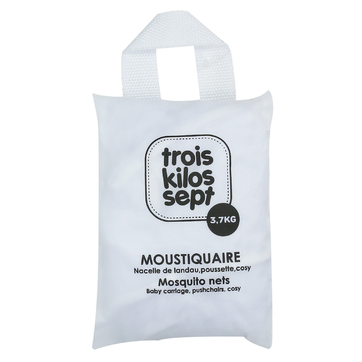 Κουνουπιέρα σε λευκό χρώμα από την εταιρεία Trois Kilos. Είναι κατασκευασμένη από 100% Polyester που την καθιστά ανθεκτική και έχει λάστιχο στο τελείωμα για να εφαρμόζει καλύτερα. Διαθέτει άνοιγμα με φερμουάρ για να έχετε πρόσβαση στο μωρό σας χωρίς να χρειάζεται να αφαιρέσετε την κουνουπιέρα. Ταιριάζει σε όλα τα καρότσια, τα πορτ μπεμπέ και τα καθίσματα αυτοκινήτου 0+.