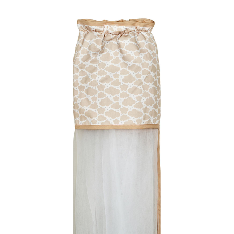 Κουνουπιέρα για το λίκνο της εταιρείας Κόσμος του Μωρού. Κατάλληλη για να προστατεύσετε το μωρό σας από τα ενοχλητικά έντομα. Το τούλι είναι κατασκευασμένο από 100% nylon και το καπέλο είναι από 100% βαμβάκι σε μπεζ χρώμα με λευκές λεπτομέρειες και μοντέρνο σχέδιο.