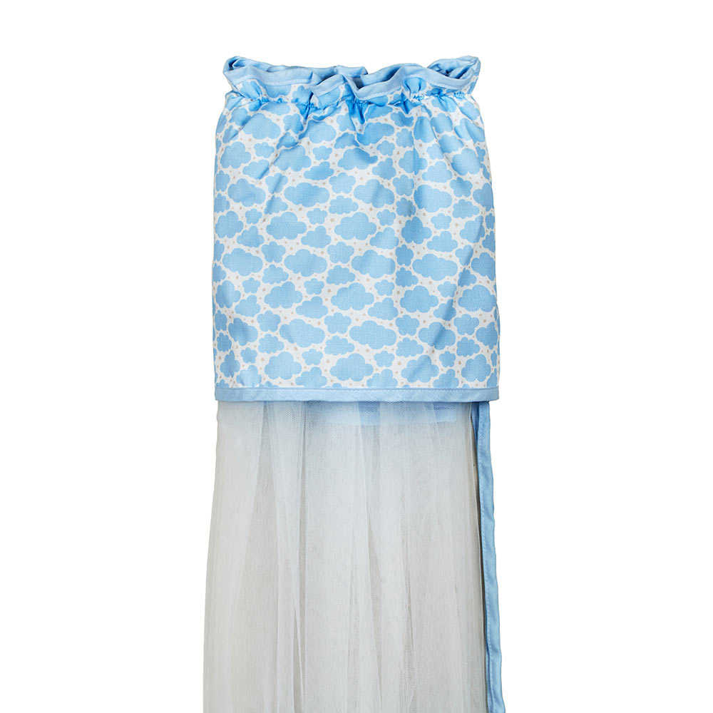 Κουνουπιέρα για το λίκνο της εταιρείας Κόσμος του Μωρού. Κατάλληλη για να προστατεύσετε το μωρό σας από τα ενοχλητικά έντομα. Το τούλι είναι κατασκευασμένο από 100% nylon και το καπέλο είναι από 100% βαμβάκι σε γαλάζιο χρώμα με λευκές λεπτομέρειες και μοντέρνο σχέδιο.