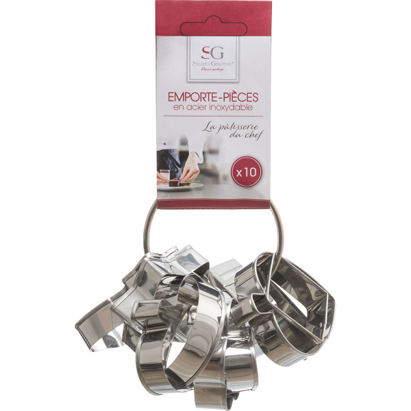 Κουπατ σε 10 διαφορετικά σχέδια για να κόβετε την ζύμη των μπισκότων σας σε διάφορα σχέδια. Το σετ διαθέτει ένα κρίκο για να τα συγκεντρώνετε όλα μαζί και να μην τα χάνετε.
