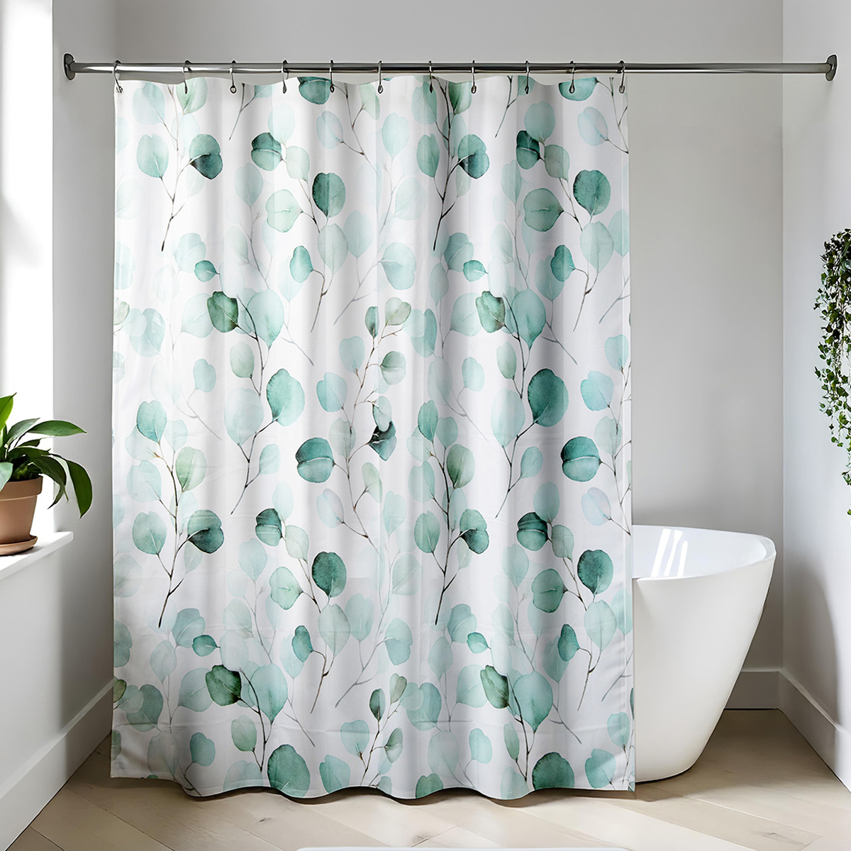 Πλαστική κουρτίνα μπάνιου σε λευκό χρώμα με βεραμάν φλοράλ σχέδιο. Είναι κατασκευασμένη από 75% EVA και 25% από φιλικό προς το περιβάλλον ανθεκτικό υλικό PEVA. Το επιφανειακό φινίρισμα του υλικού δίνει ένα νερό-απωθητικό αποτέλεσμα. Ιδανική για ντουζιέρα και μπανιέρα. *Δεν περιλαμβάνονται κρίκοι κρεμάσματος.* Συνδυάστε τη με τα υπόλοιπα είδη της ίδιας σειράς για ένα ολοκληρωμένο αποτέλεσμα στο μπάνιο σας.
