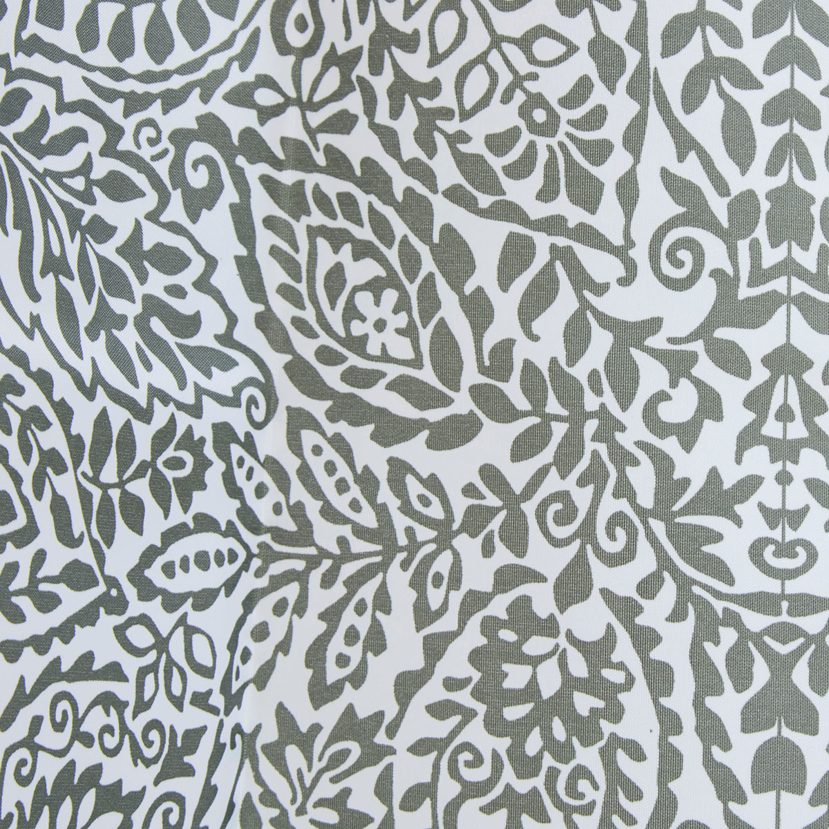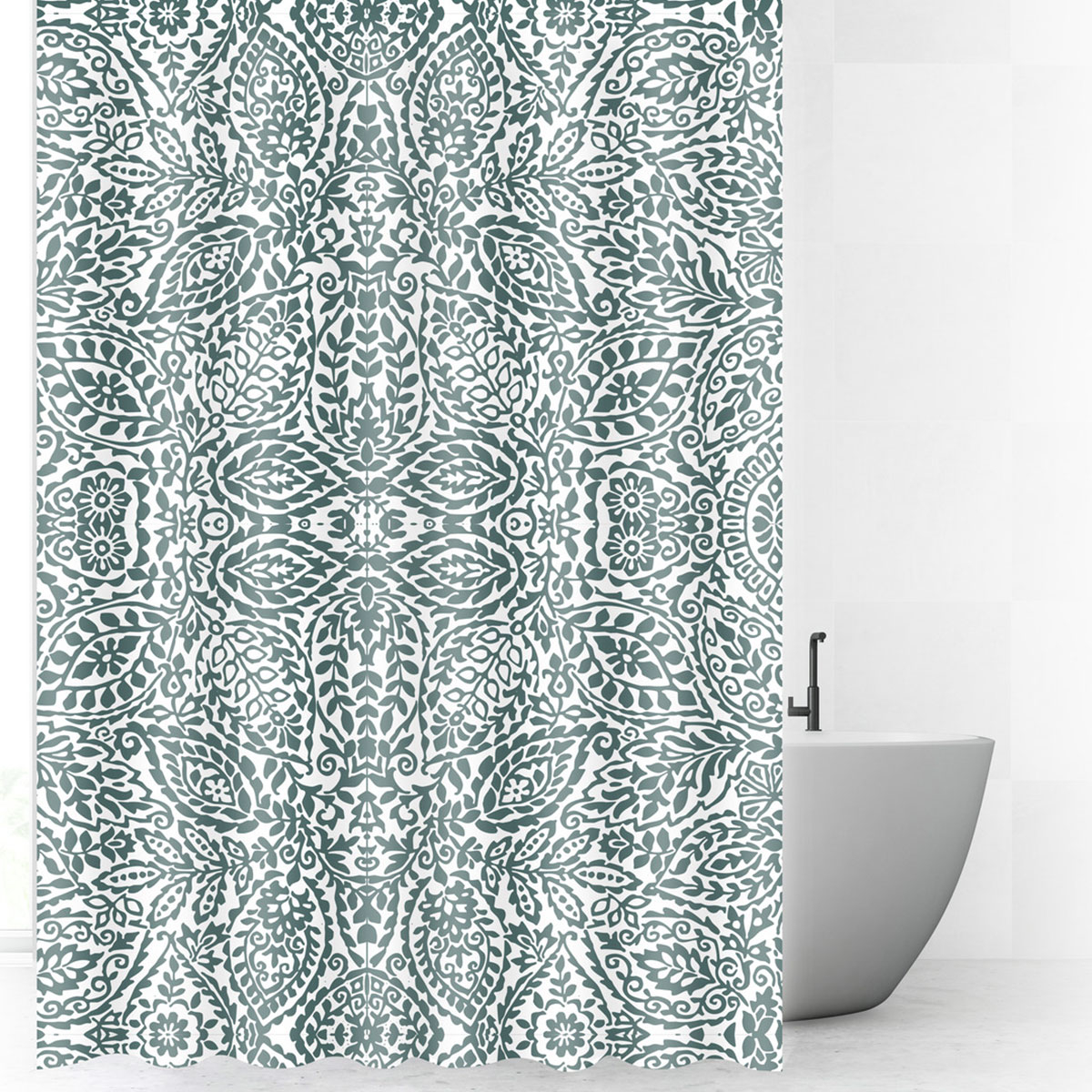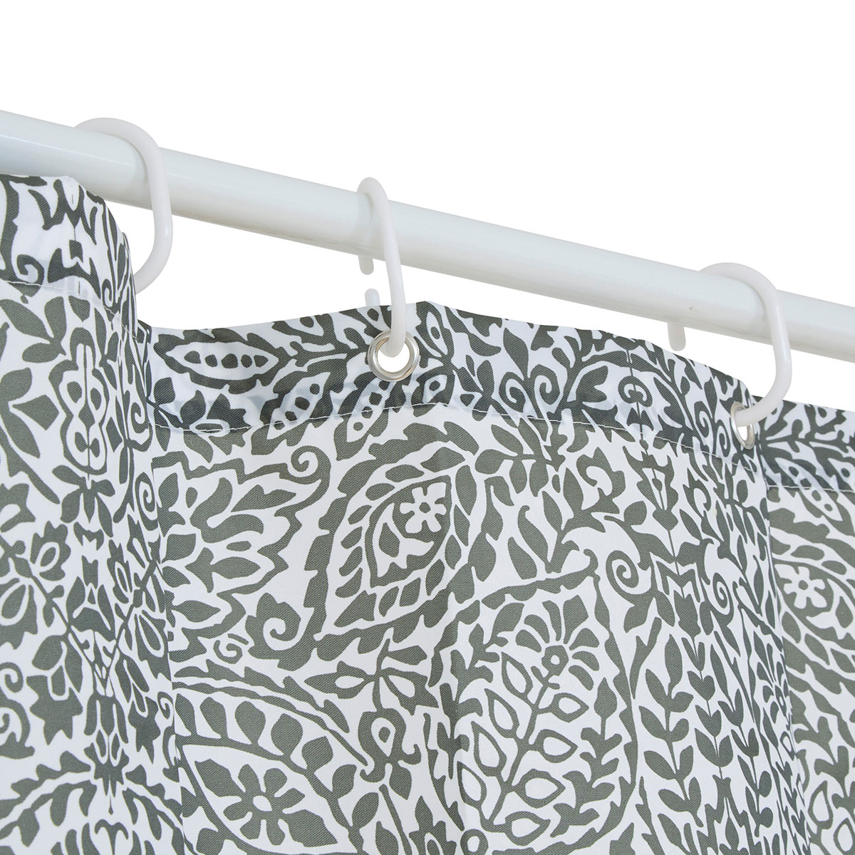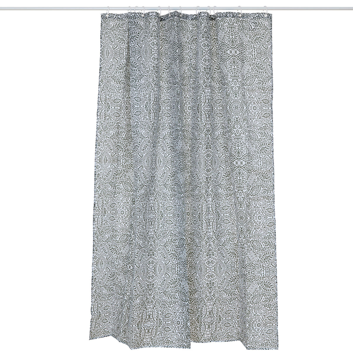Υφασμάτινη κουρτίνα μπάνιου με μοντέρνο σχέδιο. Είναι κατασκευασμένη από 100% polyester σε χακί χρώμα με λευκές λεπτομέρειες. Το ύφασμα είναι αδιαβροχοποιημένο για να γλιστράνε τα νερά από το ύφασμα. *Περιλαμβάνονται 12 κρίκοι κρεμάσματος.* Συνδυάστε τη με τα υπόλοιπα είδη της ίδιας σειράς για ένα ολοκληρωμένο αποτέλεσμα στο μπάνιο σας.