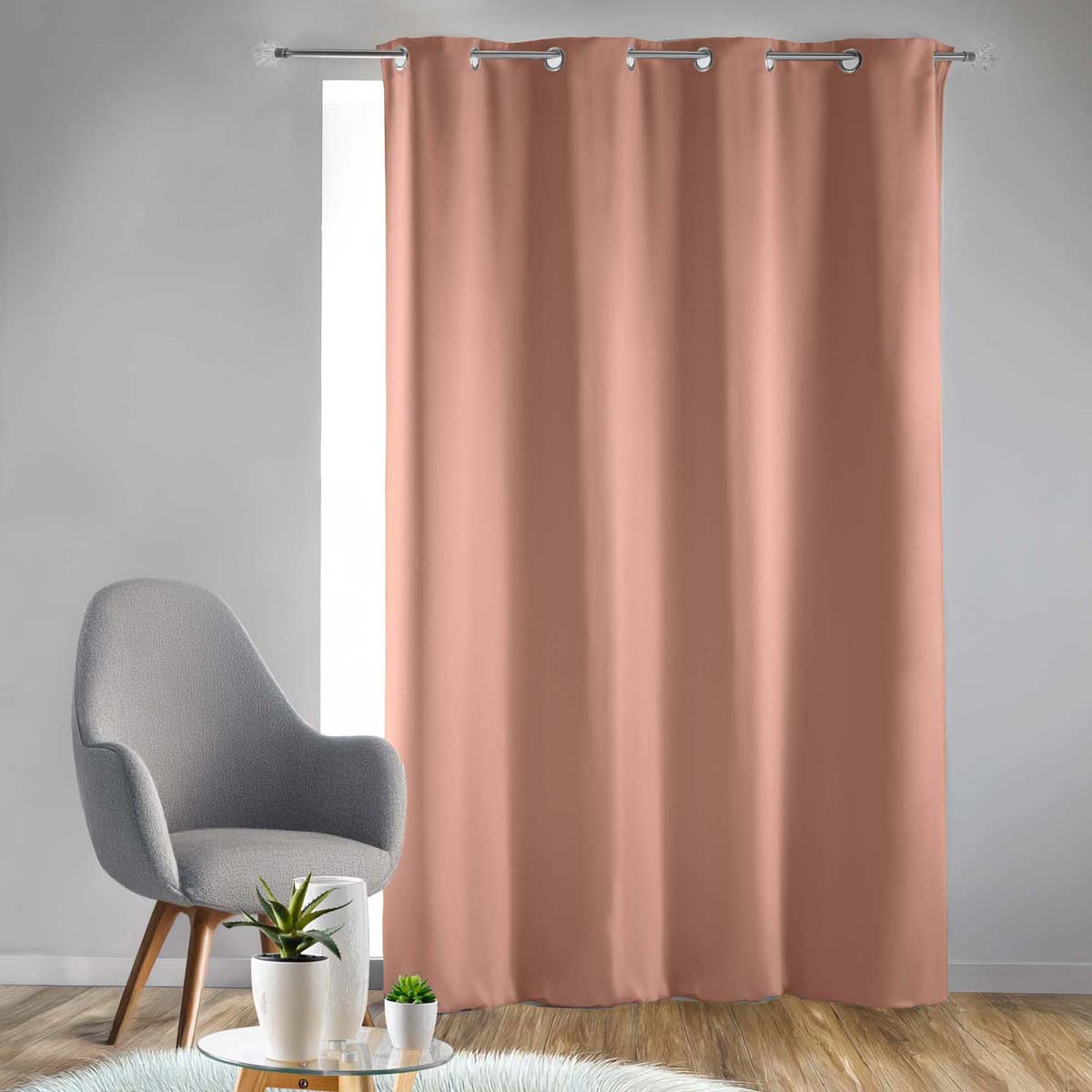 Κουρτίνα συσκότισης σε ροζ απόχρωση. Το ύφασμα είναι πλήρους αδιαφάνειας από 100% polyester. Στο επάνω μέρος διαθέτει τρουκς κρεμάσματος διαμέτρου 4cm για εύκολη τοποθέτηση. Το ύφασμα είναι πλήρης σκίασης που δεν επιτρέπει να περάσει στον χώρο καθόλου φως. Συνδυάστε το χρώμα και το ύφος της κουρτίνας με τον χώρο σας και ανανεώστε την διακόσμησή του.