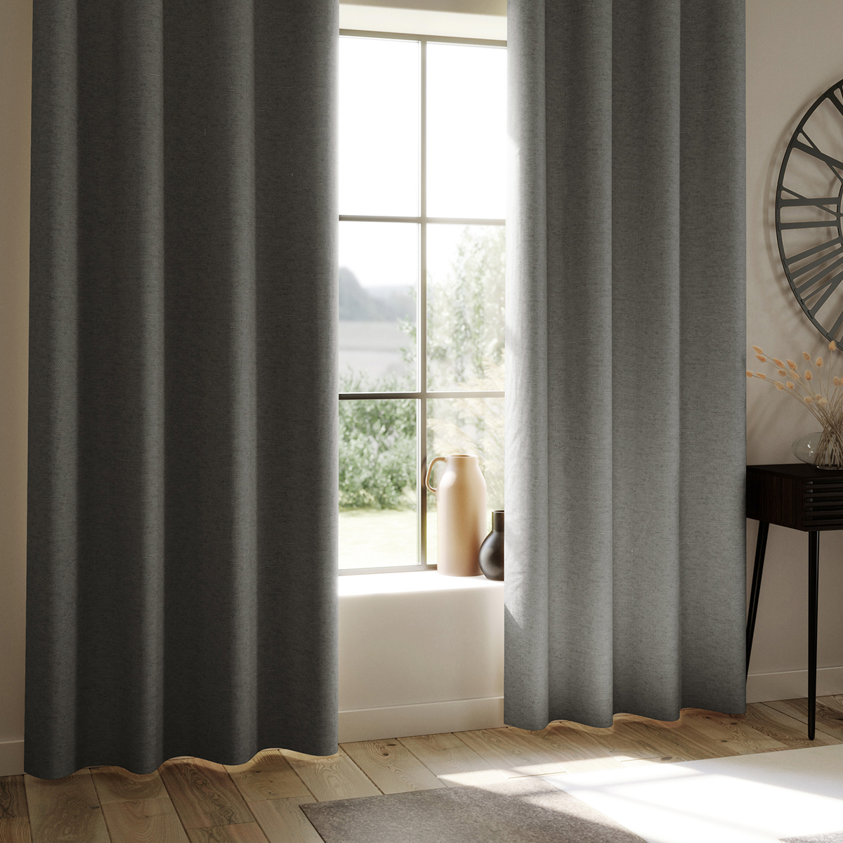 Κουρτίνα συσκότισης σε ανθρακί χρώμα, κατασκευασμένη από 100% polyester. Είναι blackout που δεν επιτρέπει καθόλου φως να περνάει στον χώρο. Στο επάνω μέρος έχει 8 τρουκς διαμέτρου 4cm για να την κρεμάσετε εύκολα σε κουρτινόξυλο. Διακοσμήστε την σε όποιο χώρο του σπιτιού σας επιθυμείτε και δημιουργήστε ένα ξεχωριστό στυλ.