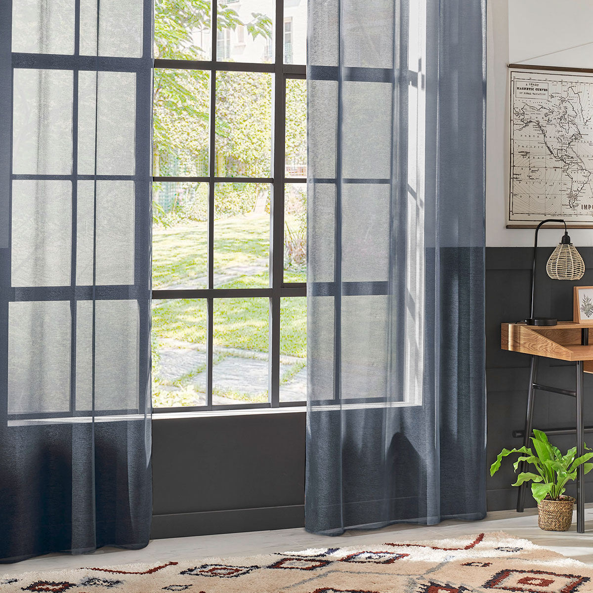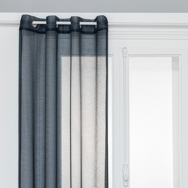 Κουρτίνα χαμηλής σκίασης σε μπλε χρώμα, κατάλληλη για όλους τους χώρους του σπιτιού. Το ύφασμα είναι από 100% polyester. Στο επάνω μέρος διαθέτει 8 ασημί τρουκς διαμέτρου 4cm κρεμάσματος για εύκολη τοποθέτηση. Το ύφασμα είναι χαμηλής σκίασης που επιτρέπει να περάσει στον χώρο πολύ φως. Συνδυάστε το χρώμα και το ύφος της κουρτίνας με τον χώρο σας και ανανεώστε την διακόσμηση του.