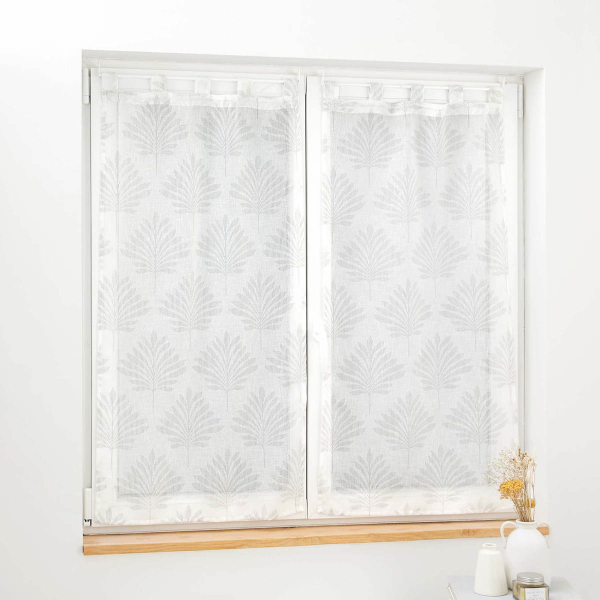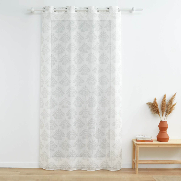 Κουρτίνα σε λευκό-εκρού χρώμα με φλοράλ σχέδιο. Το ύφασμα είναι βουάλ από 100% polyester με χαμηλή σκίαση, που επιτρέπει στο φως να περνάει. Στο επάνω μέρος έχει τρουκς κρεμάσματος με διάμετρο 4cm για εύκολη τοποθέτηση. Συνδυάστε το χρώμα και το ύφος της κουρτίνας με τον χώρο σας και ανανεώστε την διακόσμησή του.