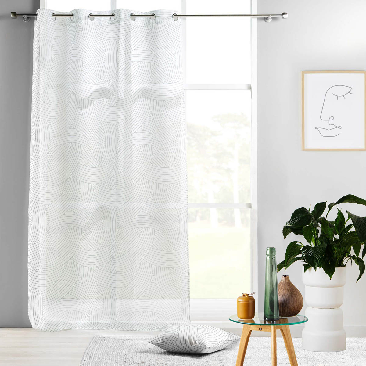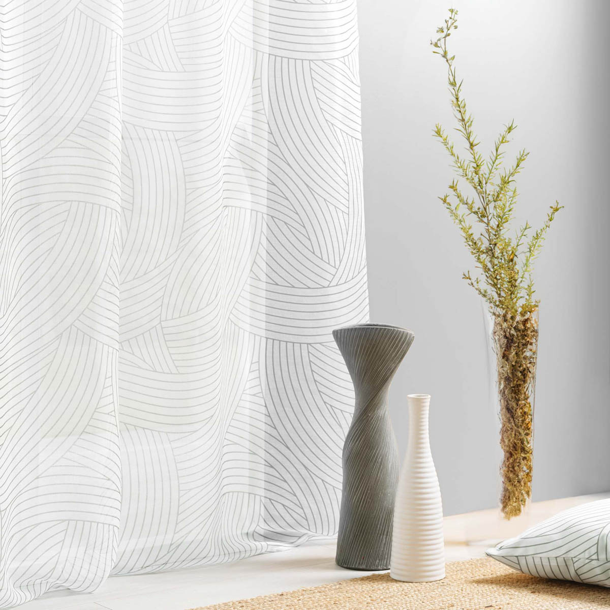 Κουρτίνα με λευκό-γκρι χρώμα και μοντέρνο σχέδιο. Το ύφασμα είναι 100% polyester, χαμηλής σκίασης. Στο επάνω μέρος διαθέτει τρουκς κρεμάσματος με διάμετρο 4cm για εύκολη τοποθέτηση. Συνδυάστε το χρώμα και το ύφος της κουρτίνας με τον χώρο σας και ανανεώστε την διακόσμησή του.