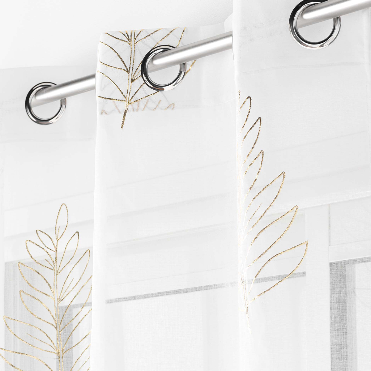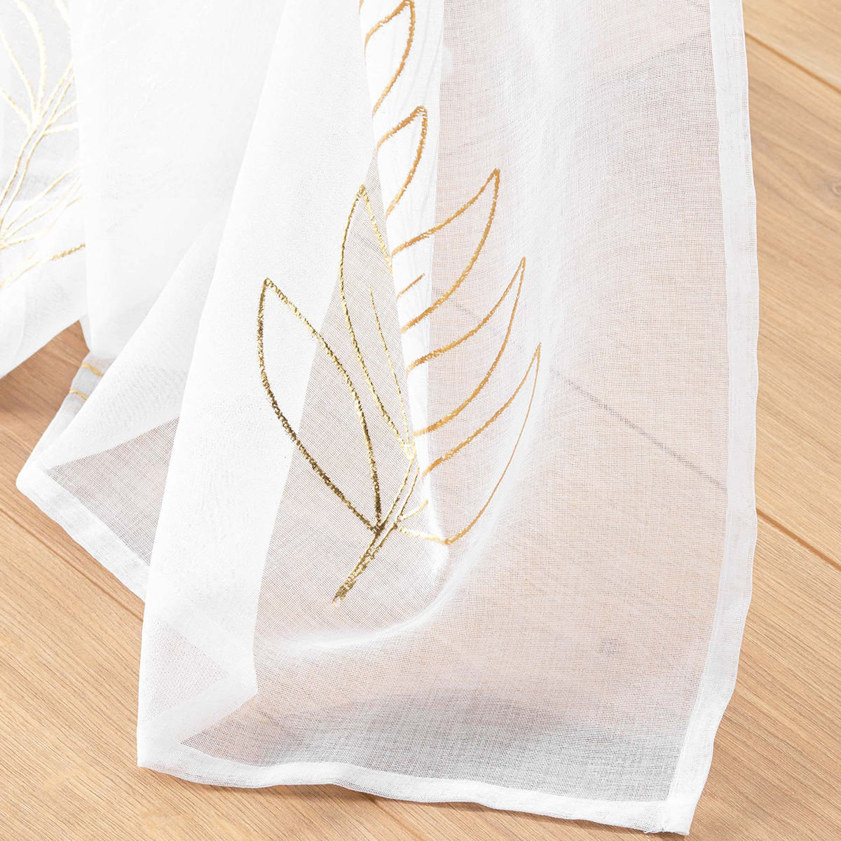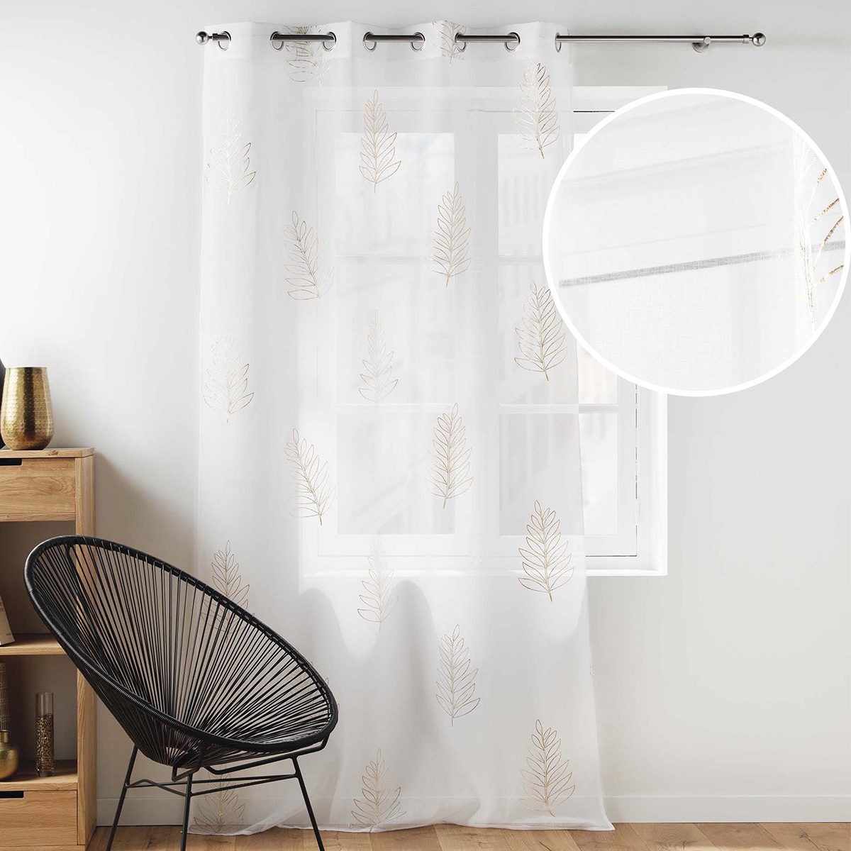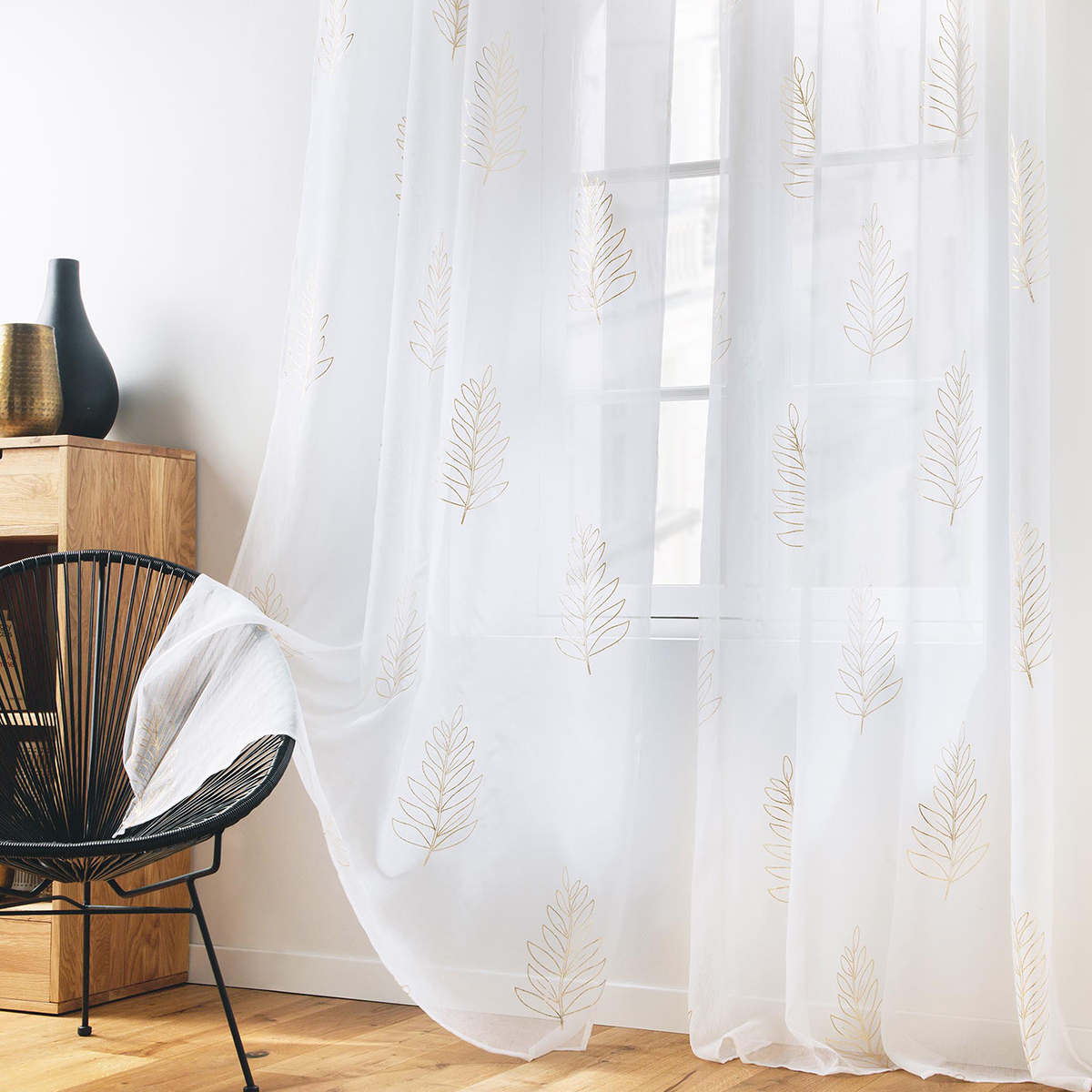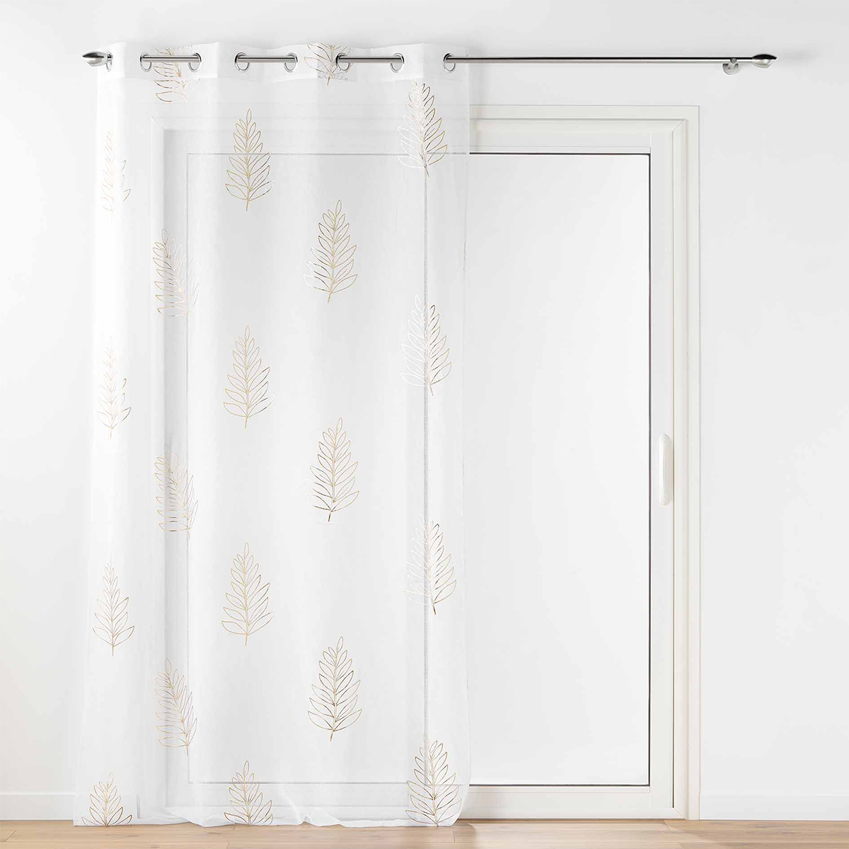 Κουρτίνα σε λευκό χρώμα με χρυσό μεταλλικό tropical σχέδιο. Είναι κατασκευασμένη από ύφασμα βουάλ 100% polyester. Το ύφασμα είναι χαμηλής σκίασης που επιτρέπει σε άπλετο φως να μπει μέσα στο δωμάτιο. Στο επάνω μέρος έχει 8 τρουκς κρεμάσματος με διάμετρο 4cm. Συνδυάστε το χρώμα και το ύφος της κουρτίνας με τον χώρο σας και ανανεώστε την διακόσμησή του.