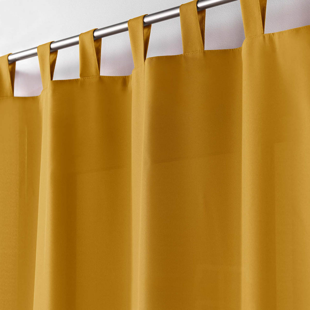 Κουρτίνα υψηλής σκίασης σε μουσταρδί χρώμα. Είναι κατασκευασμένη από ύφασμα 100% polyester. Στο επάνω μέρος διαθέτει τιράντες για εύκολο κρέμασμα. Συνδυάστε το χρώμα και το ύφος της κουρτίνας με τον χώρο σας και ανανεώστε την διακόσμησή του.