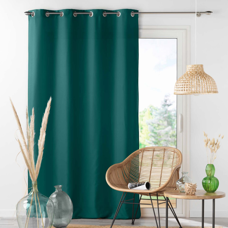 Κουρτίνα μέτριας σκίασης σε πετρόλ χρώμα. Είναι κατασκεπασμένη από 100% πολυεστερικό ύφασμα. Στο επάνω μέρος διαθέτει τρουκς κρεμάσματος με διάμετρο 4cm για εύκολη τοποθέτηση. Συνδυάστε το χρώμα και το ύφος της κουρτίνας με τον χώρο σας και ανανεώστε την διακόσμησή του.