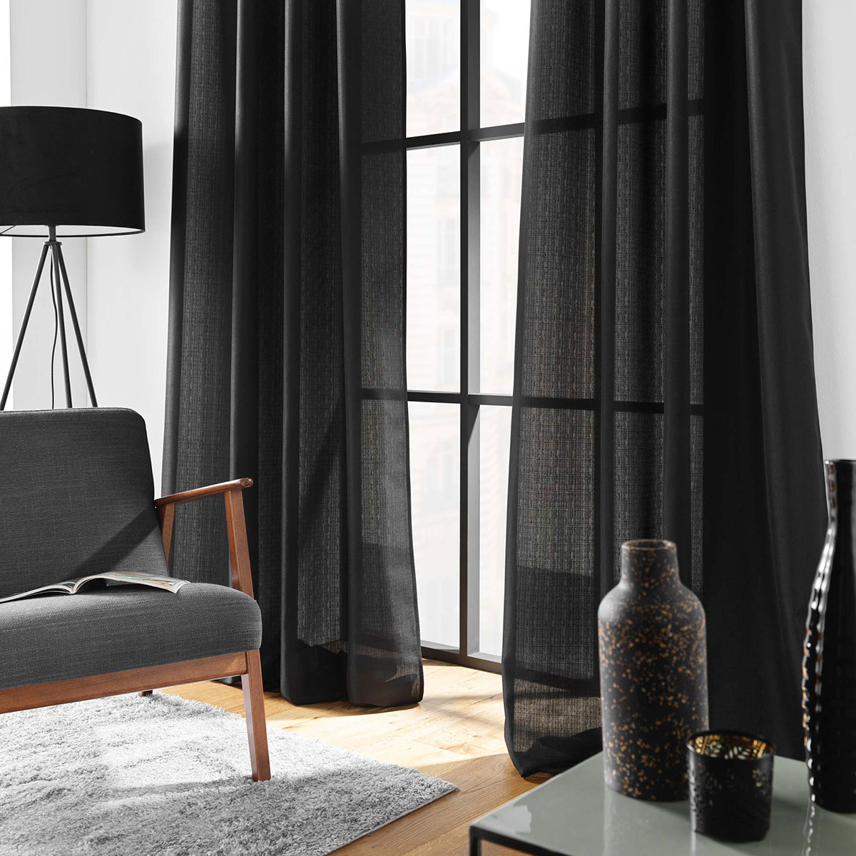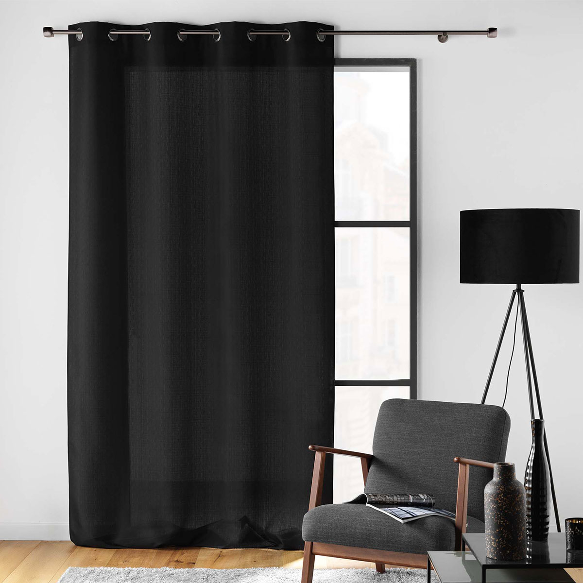 Κουρτίνα σε μαύρο χρώμα, κατασκευασμένη από 100% polyester. Διαθέτει τρουκς κρεμάσματος με διάμετρο 4cm για εύκολη τοποθέτηση. Το ύφασμά της είναι μέτριας σκίασης που επιτρέπει στο φως να περνάει στον χώρο. Συνδυάστε την με την υπόλοιπη διακόσμησής σας για να δημιουργήσετε το στυλ που πάντα ονειρευόσασταν.