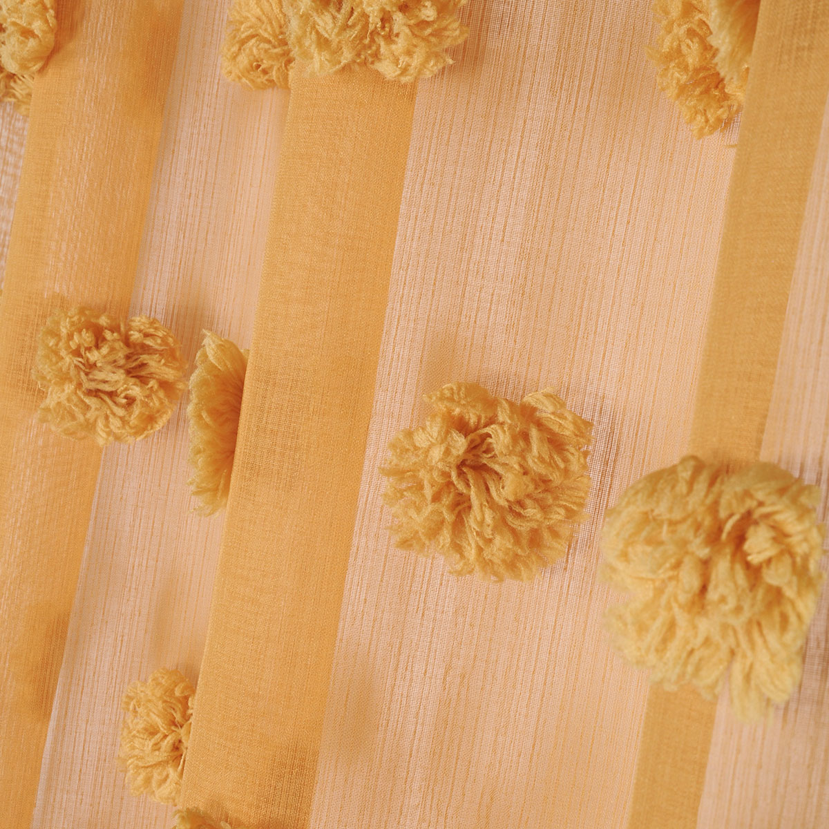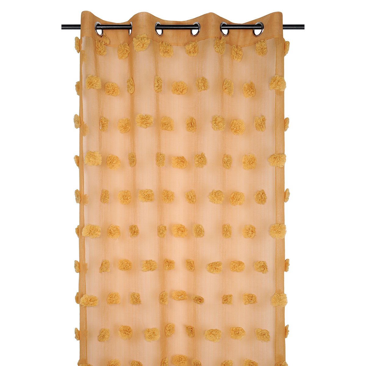 Κουρτίνα εσωτερικού χώρου στο χρώμα της ώχρας και διακοσμητικά φουντάκια στην επιφάνεια. Κατασκευασμένη από 100% polyester με ενσωματωμένα τρουκς διαμέτρου 4cm για εύκολη τοποθέτηση. Το ύφασμα είναι χαμηλής σκίασης. Διακοσμήστε την σε όποιο χώρο του σπιτιού σας επιθυμείτε και δημιουργήστε ένα ξεχωριστό στυλ.