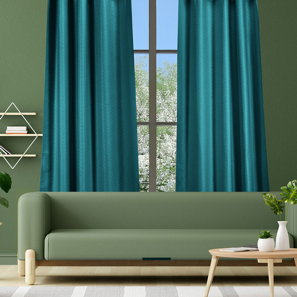 Κουρτίνα σε πετρόλ χρώμα από την εταιρεία Whitegg. Είναι κατασκευασμένη από 100% polyester και έχει τρουκς για εύκολη τοποθέτηση. Το ύφασμα είναι υψηλής σκίασης που δεν επιτρέπει πολύ φως να περνάει στον χώρο.