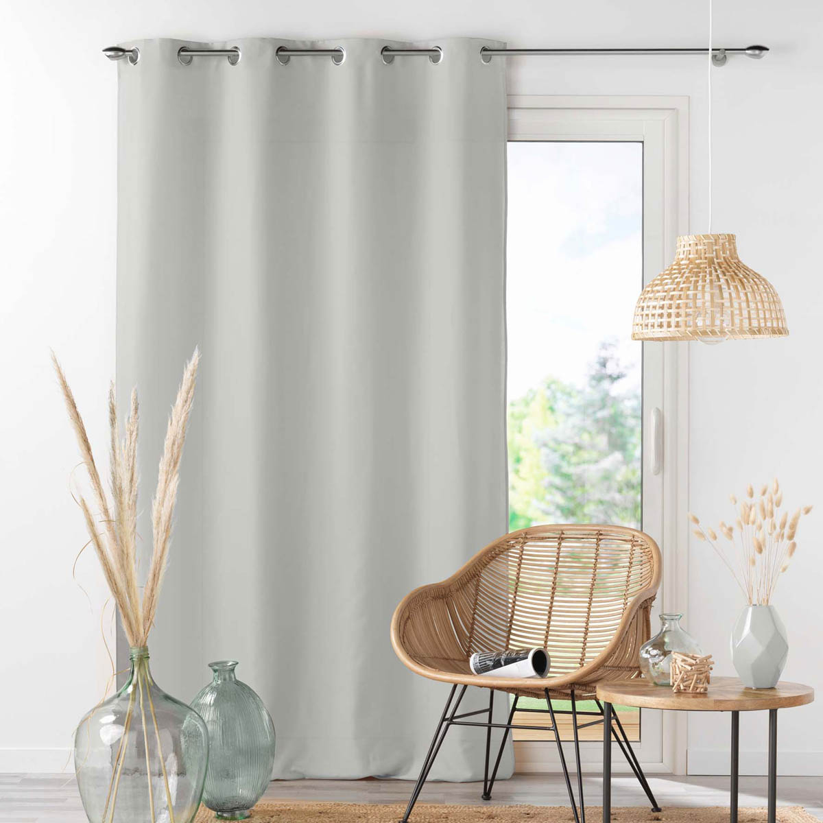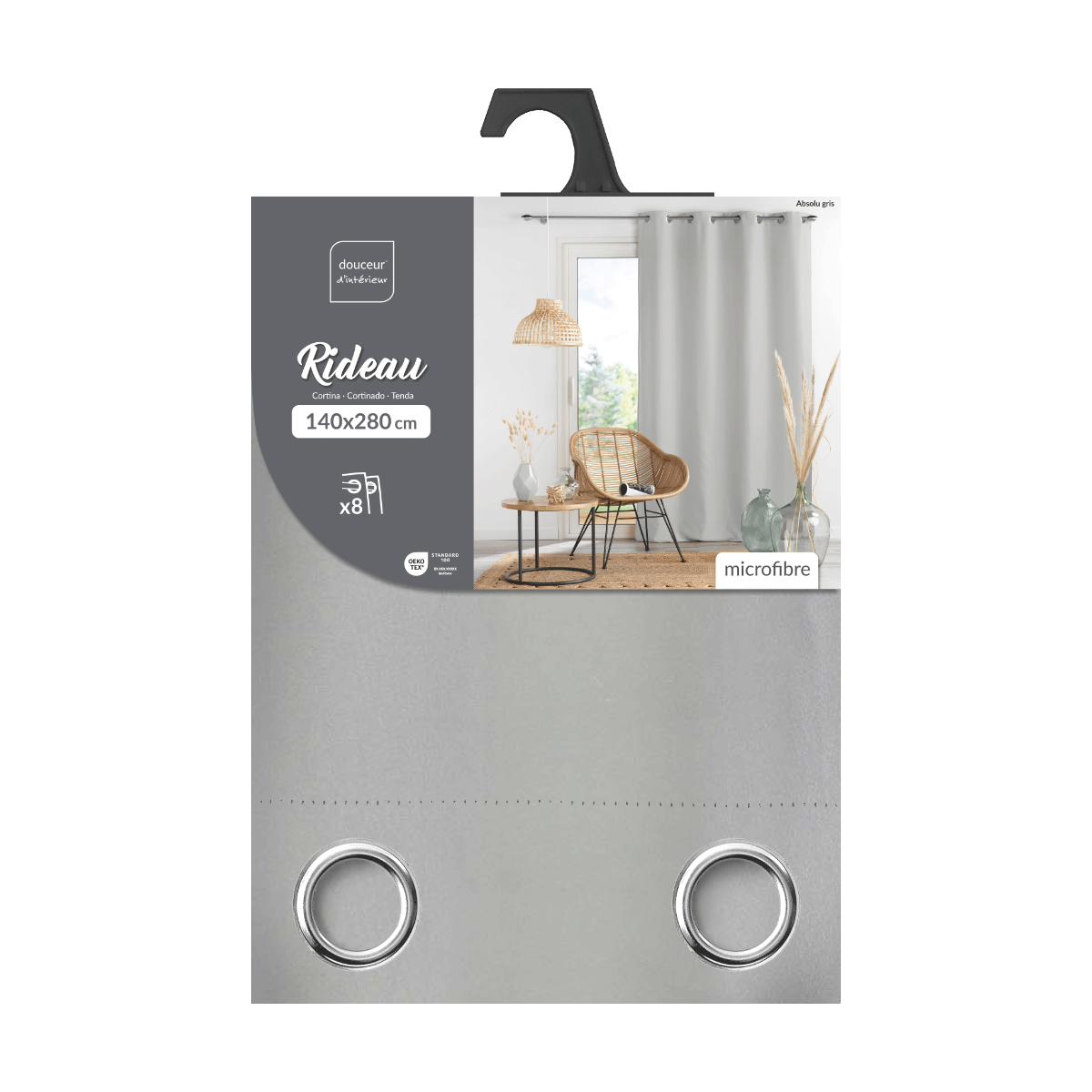 Κουρτίνα μέτριας σκίασης σε γκρι χρώμα. Έχει ύφασμα microfiber, σύνθεσης 100% polyester. Στο επάνω μέρος διαθέτει τρουκς κρεμάσματος με διάμετρο 4cm για εύκολη τοποθέτηση. Συνδυάστε το χρώμα και το ύφος της κουρτίνας με τον χώρο σας και ανανεώστε την διακόσμησή του.