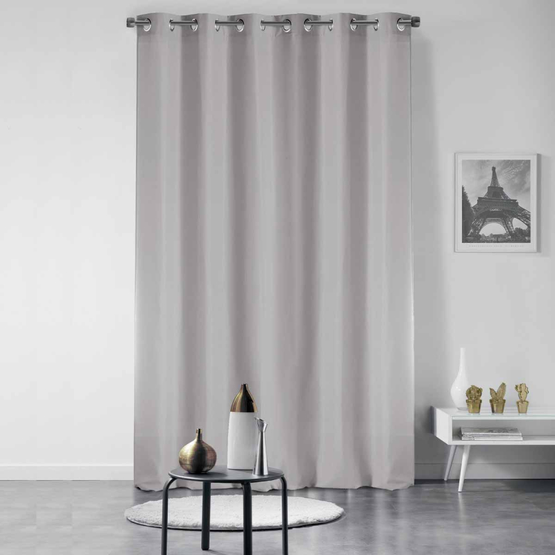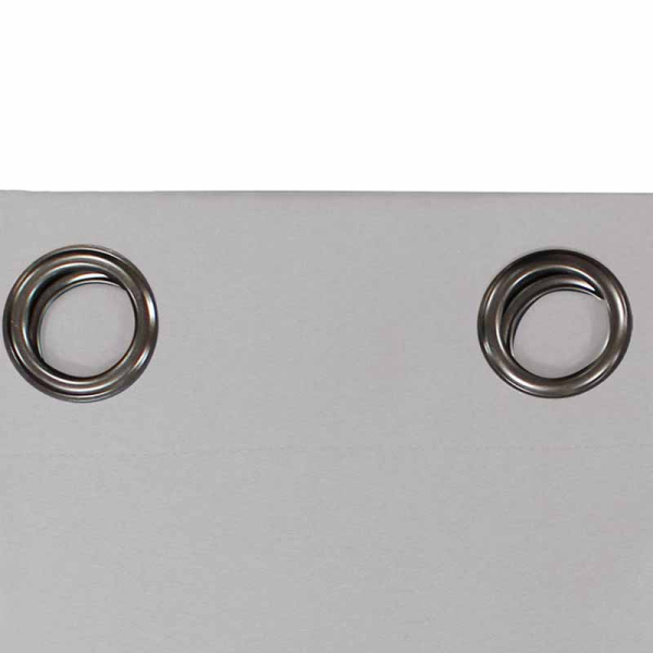 Κουρτίνα υψηλής σκίασης με τρουκς διαμέτρου 4cm. Το ύφασμα είναι 100% polyester σε γκρι απόχρωση.
