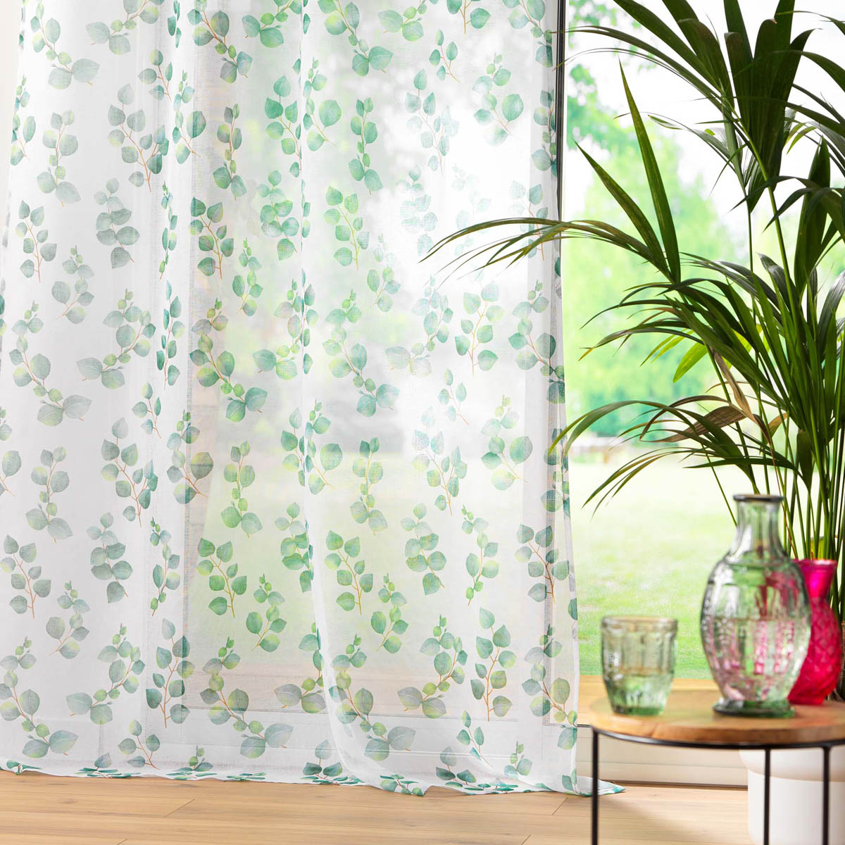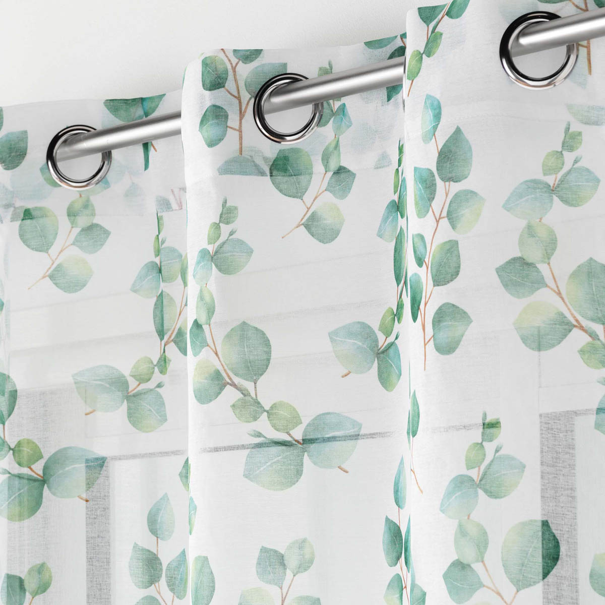 Κουρτίνα με λευκό φόντο και φλοράλ σχέδιο σε πράσινες αποχρώσεις. Το ύφασμα είναι 100% polyester, χαμηλής σκίασης. Στο επάνω μέρος έχει τρουκς κρεμάσματος με διάμετρο 4cm για εύκολη τοποθέτηση. Συνδυάστε το χρώμα και το ύφος της κουρτίνας με τον χώρο σας και ανανεώστε την διακόσμησή του.