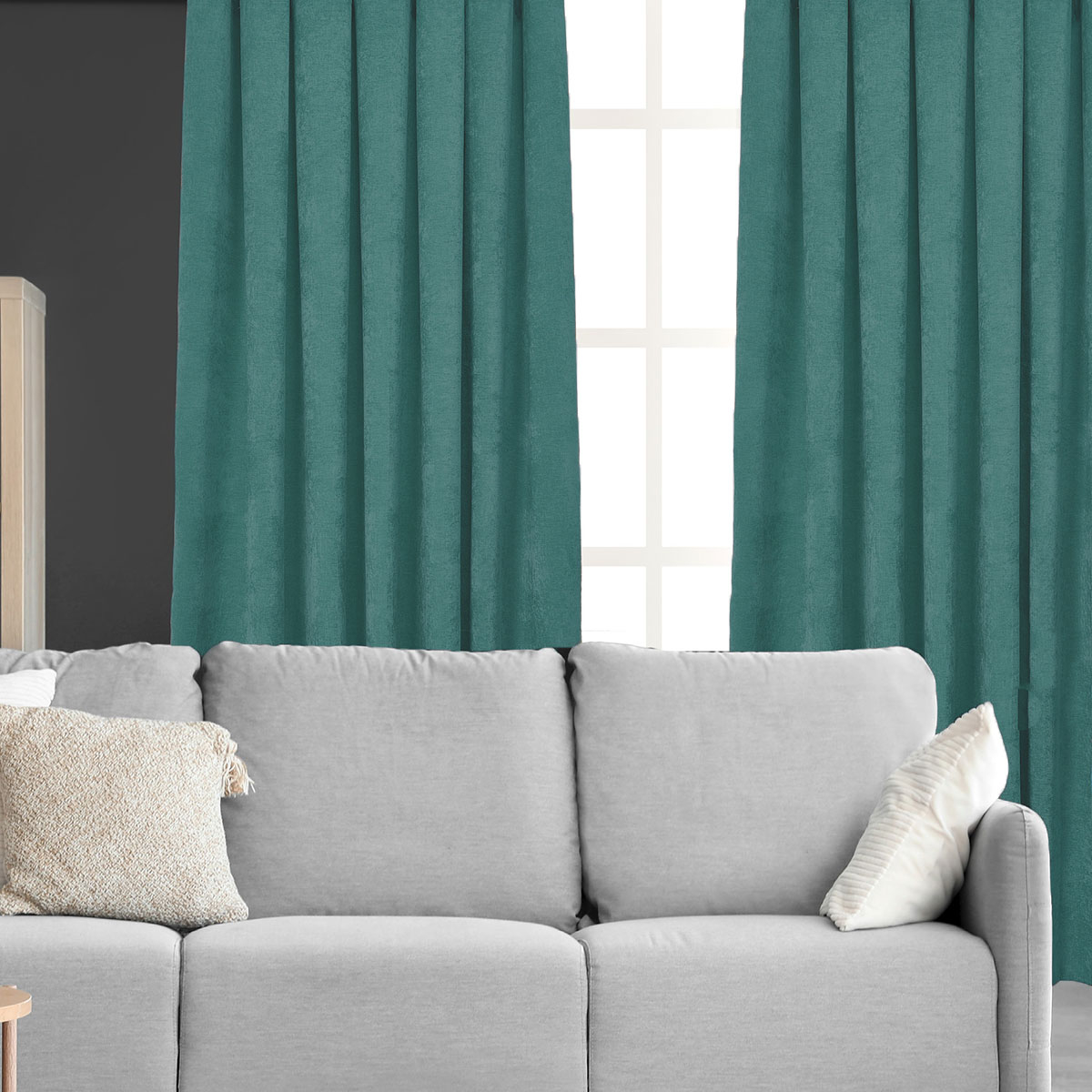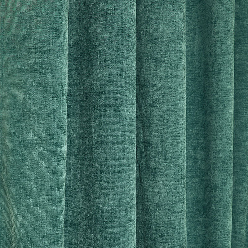 Κουρτίνα σε πετρόλ χρώμα της εταιρείας Whitegg. Το ύφασμά της είναι chenille από 100% polyester και έχει τρουκς για εύκολη τοποθέτηση. Το ύφασμα είναι υψηλής σκίασης που δεν επιτρέπει πολύ φως να περνάει στον χώρο.