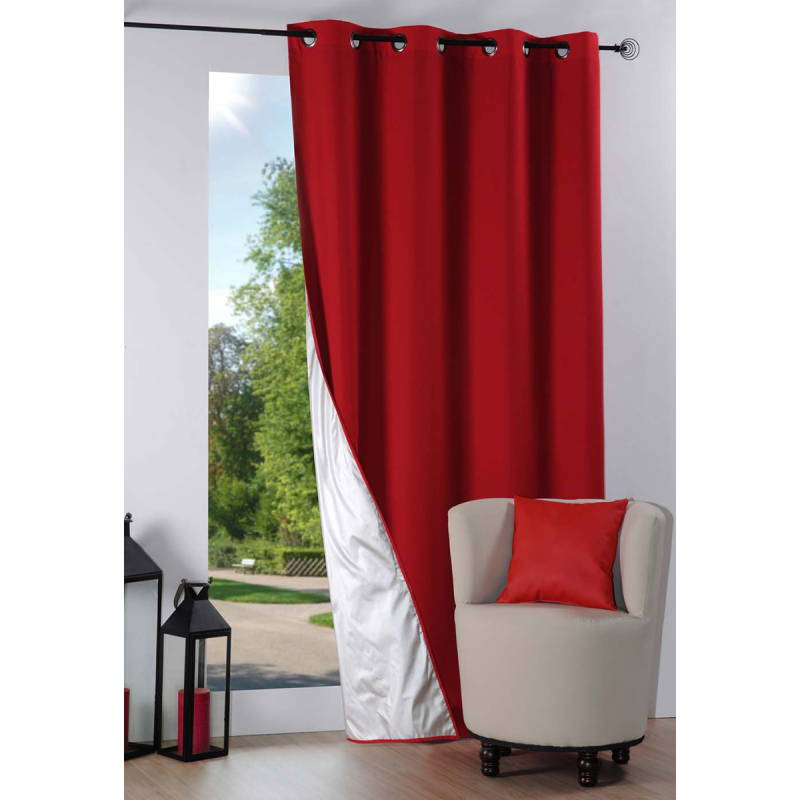 Κουρτίνα black out εσωτερικού χώρου σε κόκκινο χρώμα. Κατασκευασμένη από 100% polyester με ενσωματωμένα τρουκς διαμέτρου 4cm για εύκολη τοποθέτηση. Η πίσω όψη είναι επενδυμένη με ασημένιο ύφασμα το οποίο προσφέρει μόνωση για την ζέστη και το κρύο, αποτρέποντας την εξωτερική θερμοκρασία να μεταβάλλει την εσωτερική. Διακοσμήστε την σε όποιο χώρο του σπιτιού σας επιθυμείτε και δημιουργήστε ένα ξεχωριστό στυλ.