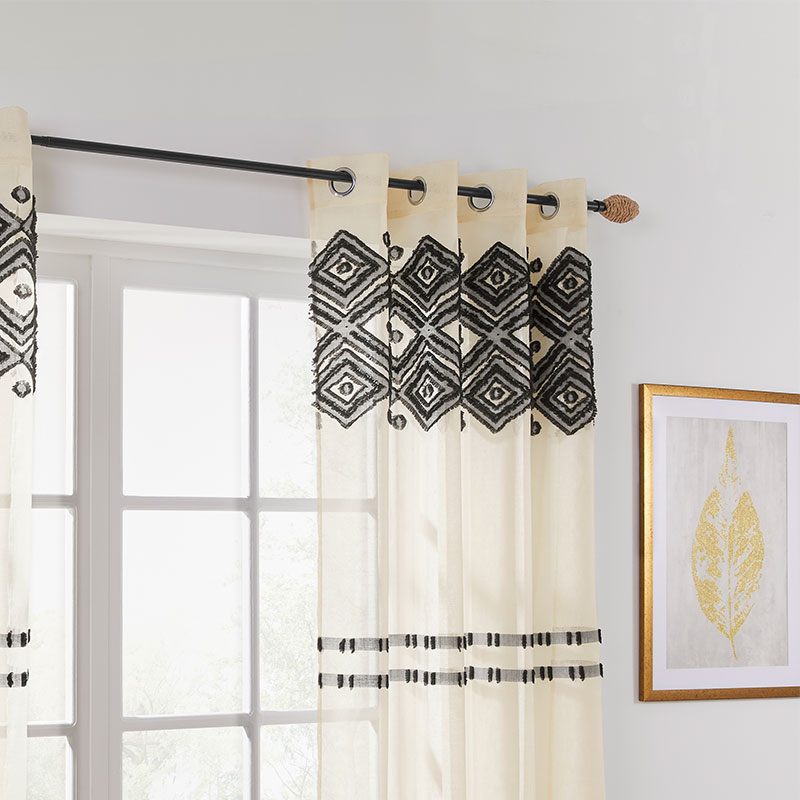 Μεταλλικό κουρτινόξυλο μονής βέργας σε μαύρο χρώμα με ματ φινίρισμα. Είναι πτυσσόμενο με δυνατότητα επέκτασης από 120 έως 210 εκατοστά. Διαθέτει 2 διακοσμητικά άκρα από ξύλο κάνναβης σε μπεζ απόχρωση με μοντέρνο σχέδιο και 2 στηρίγματα τοίχου. Επιλέξτε το κουρτινόξυλο και την κουρτίνα που ταιριάζει στο ύφος του χώρου σας και ανανεώστε την διακόσμηση του.