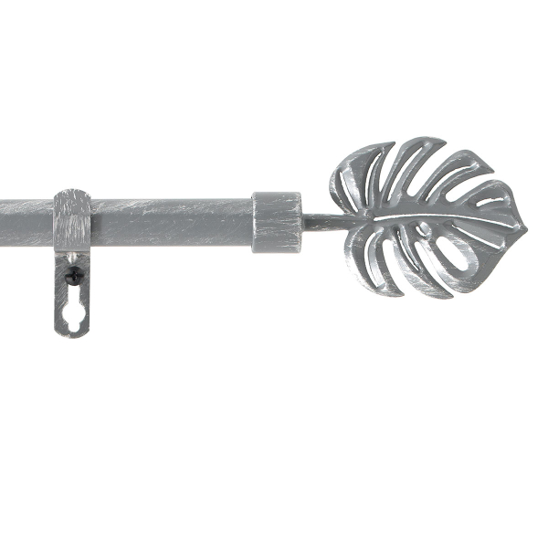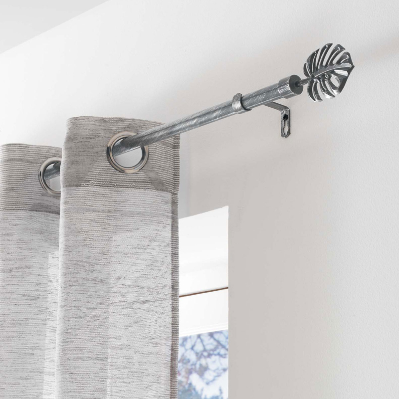 Μεταλλικό κουρτινόξυλο μονής βέργας σε γκρι απόχρωση. Είναι πτυσσόμενο με δυνατότητα επέκτασης από 210 έως 380 εκατοστά. Διαθέτει 2 διακοσμητικά άκρα με tropical σχέδιο και 2 στηρίγματα τοίχου. Τα υλικά τοποθέτησης και οι οδηγίες εγκατάστασης περιλαμβάνονται στην συσκευασία. Επιλέξτε το κουρτινόξυλο και την κουρτίνα που ταιριάζει στο ύφος του χώρου σας και ανανεώστε την διακόσμησή του.