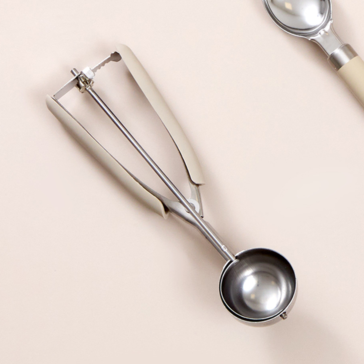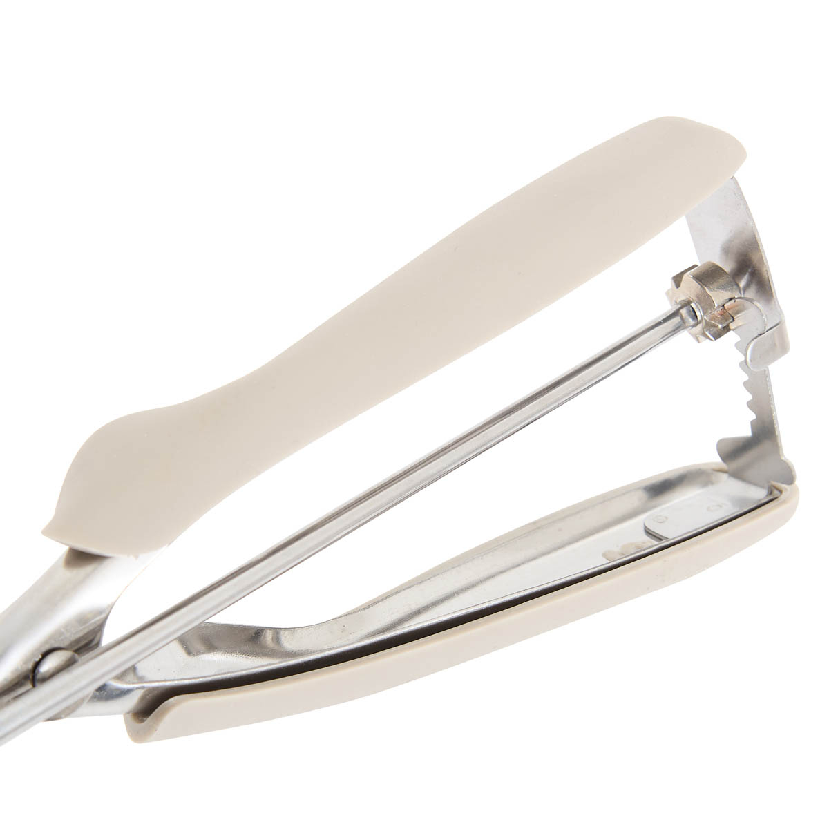 Κουτάλι σερβιρίσματος παγωτού από ανοξείδωτο υλικό σε μοντέρνο μπεζ χρώμα. Διαθέτει μηχανισμό για να έχετε πάντα εύκολα και γρήγορα την τέλεια μπάλα παγωτό. Απαραίτητο και πρακτικό εργαλείο κουζίνας για καθημερινή χρήση.