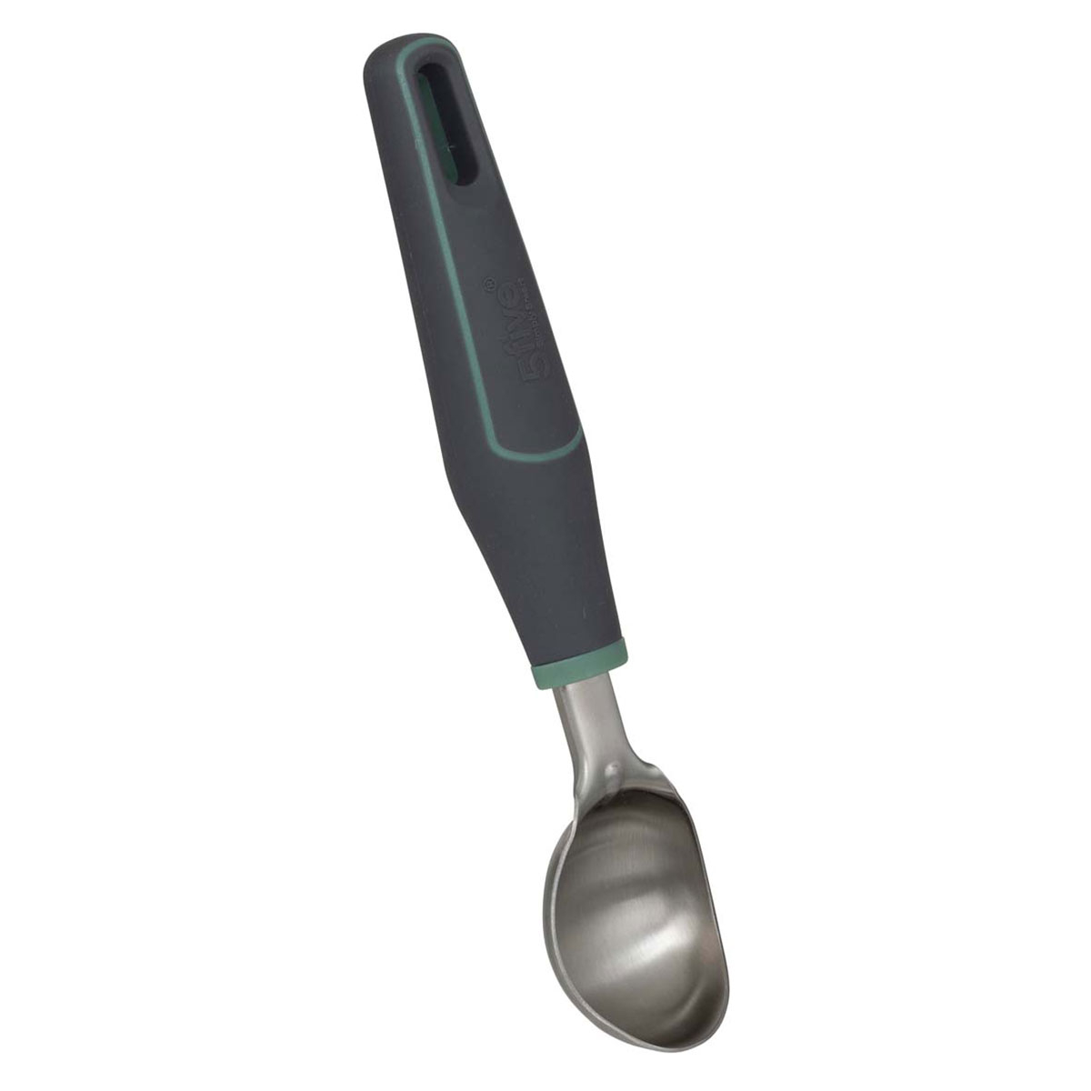 Σπάτουλα παγωτού σε γκρι χρώμα κατασκευασμένη από ανθεκτικό πλαστικό υλικό και ανοξείδωτο ατσάλι. Ιδανική κουτάλα για να σερβίρετε το παγωτό σας. Συνδυάστε τη με τα υπόλοιπα εργαλεία κουζίνας της ίδιας συλλογής.