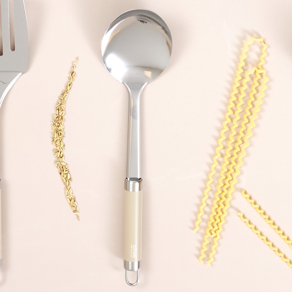 Κουτάλα ραγού κατασκευασμένη από ανοξείδωτο υλικό σε μοντέρνο μπεζ χρώμα. Απαραίτητο και πρακτικό εργαλείο κουζίνας για καθημερινή χρήση, που διευκολύνει το σερβίρισμα σαλτσών.