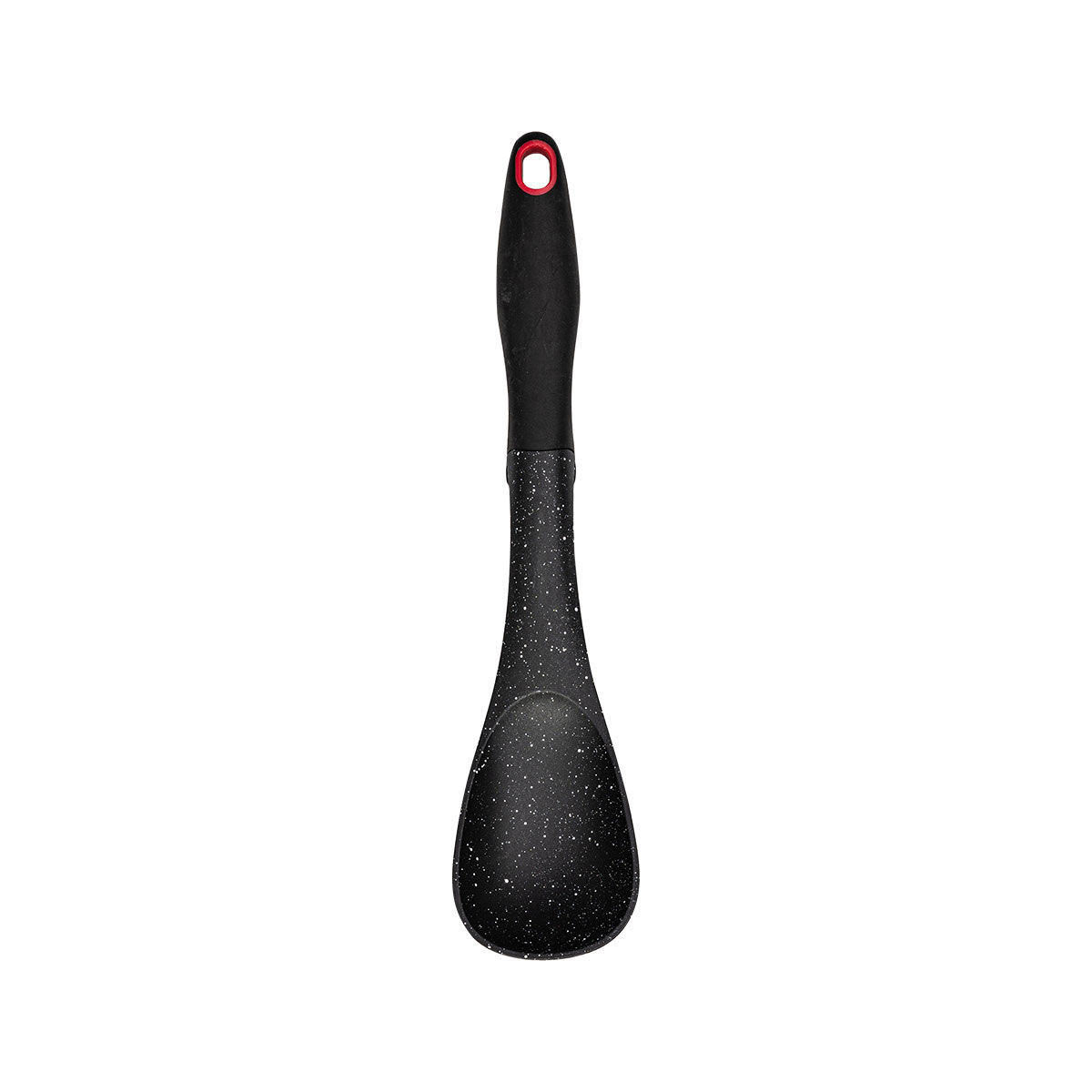 Αντικολλητική κουτάλα ραγού με μαρμάρινη επίστρωση από την σειρά Cooktech Series της εταιρείας εstia. Υψηλής ποιότητας πλαστικό nylon κατάλληλο για επαφή με τα τρόφιμα. Ιδανική για αντικολλητικά και κεραμικά σκεύη. Διαθέτει στήριγμα για να μπορεί να στερεωθεί στην κατσαρόλα ή στον πάγκο. Έχει εργονομική λαβή σιλικόνης με θηλιά για να κρεμιέται. Αντέχει σε υψηλές θερμοκρασίες έως 220οC. Μπορεί να πλυθεί σε πλυντήριο πιάτων.