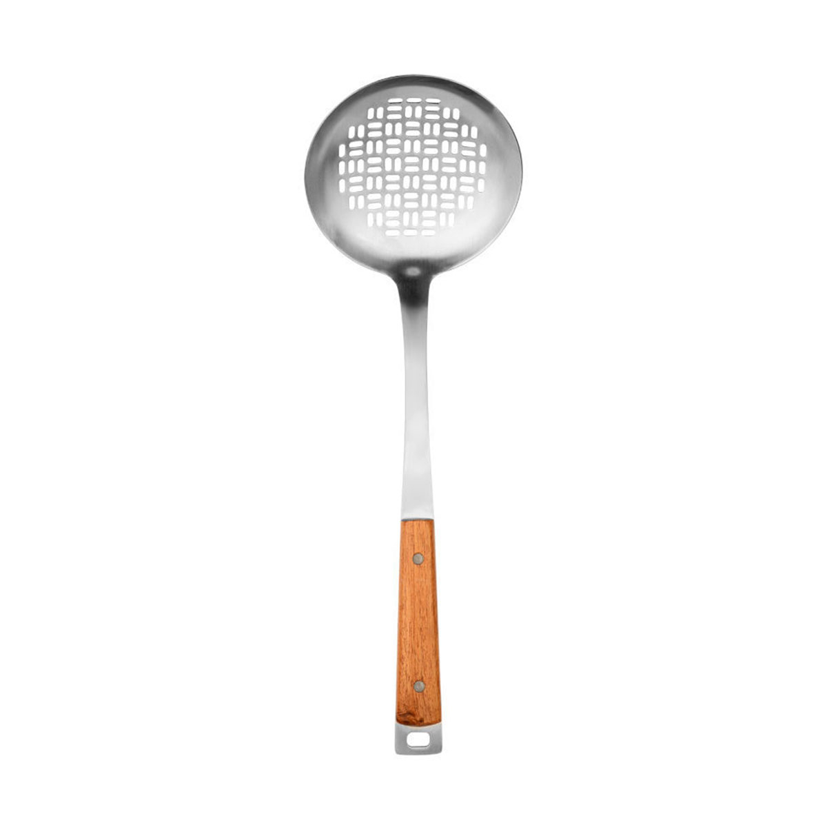 Τρυπητή κουτάλα από την εταιρεία εstia. Είναι κατασκευασμένη από ανοξείδωτο ατσάλι σε ασημί χρώμα. Η λαβή είναι από ξύλο ακακίας σε φυσική απόχρωση. Το ξύλο προσφέρει αντοχή στη φθορά του χρόνου. Διαθέτει θηλιά για να κρεμιέται. Ιδανική για καθημερινή χρήση.