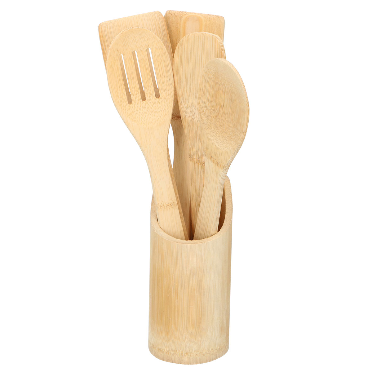 Κουτάλες μαγειρικής σε βάση από την εταιρία Alpina. Το σετ περιλαμβάνει 5 κουτάλες και 1 βάση. Είναι κατασκευασμένες από ξύλο bamboo σε μπεζ χρώμα. Ιδανικές κουτάλες για τη κουζίνα σας.
