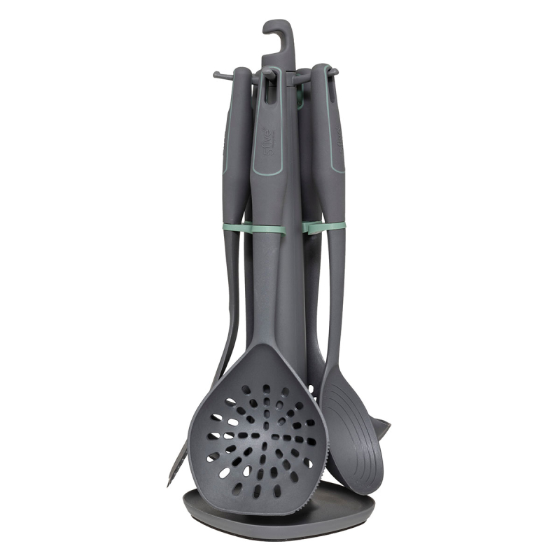 Κουτάλες μαγειρικής σε γκρι χρώμα κατασκευασμένες από ανθεκτικό πλαστικό υλικό. Στο σετ περιλαμβάνονται 5 κουτάλες και μία βάση για να τις κρεμάτε. Ιδανικές για το μαγείρεμα ή το σερβίρισμα του φαγητού. Συνδυάστε τις με τα υπόλοιπα εργαλεία κουζίνας της ίδιας συλλογής.
