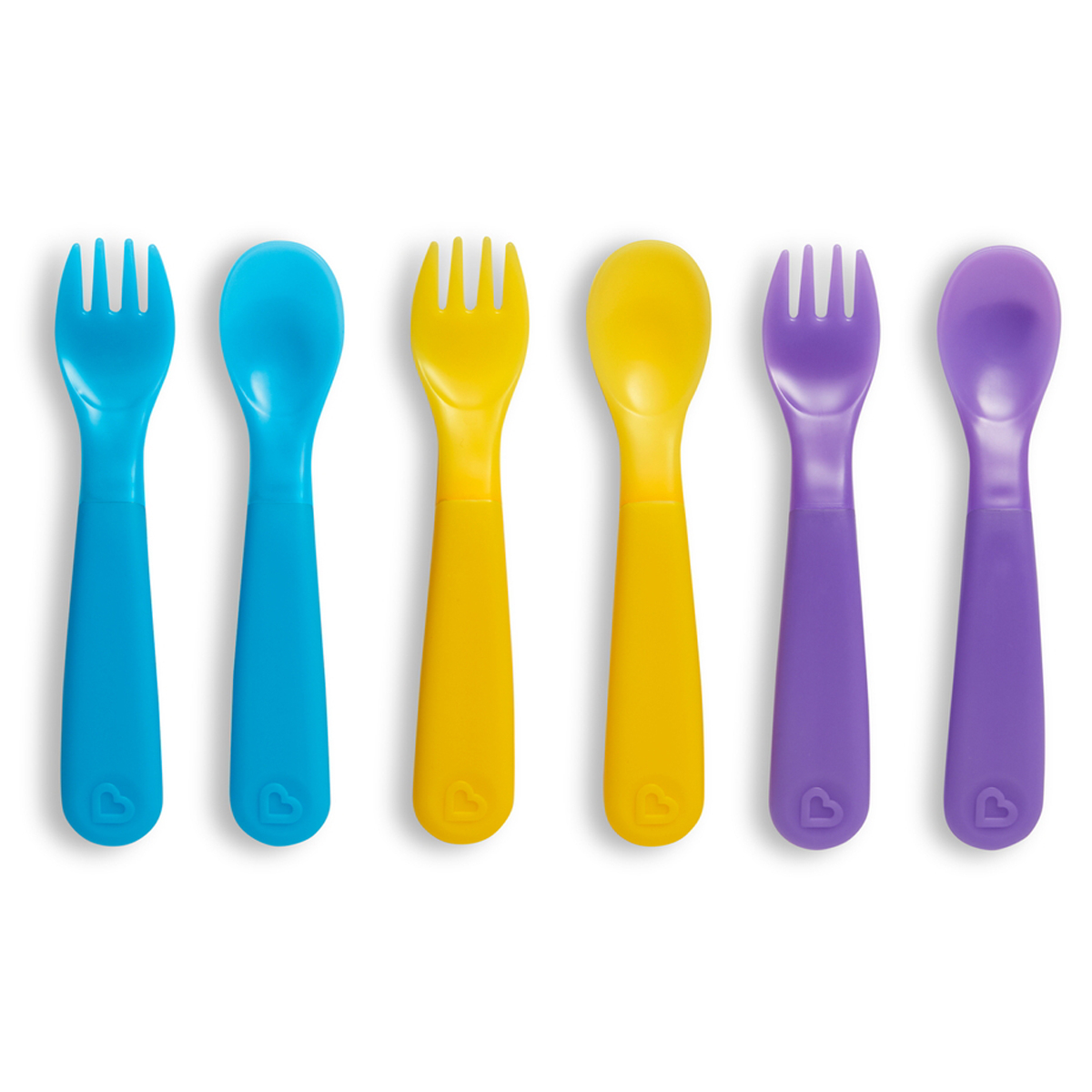 Κουτάλια και πιρούνια φαγητού, σε 3 χρώματα της εταιρείας Munchkin. Είναι κατασκευασμένα από πλαστικό υλικό χωρίς BPA και έχουν στρογγυλεμένες άκρες για μεγαλύτερη ασφάλεια. Ειδικά σχεδιασμένα για να χωράνε στα μικρά χεράκια των παιδιών και να μάθει να τρώει μόνο του. Έχουν αισθητήρα θερμοκρασίας που δείχνει αν το φαγητό είναι πολύ ζεστό ή κρύο, αλλάζοντας χρώμα. Βυθίστε απλώς το άκρο του κουταλιού στο φαγητό του μωρού και δείτε αν το χρώμα του αλλάξει. Αν γίνει λευκό, το φαγητό είναι πολύ ζεστό ενώ αν γίνει μωβ, το φαγητό είναι πολύ κρύο. Για την μέγιστη αλλαγή χρώματος, βυθίστε το κουτάλι ή το πιρούνι στο φαγητό και ανακατέψτε για 10 δευτερόλεπτα. Κατάλληλα για ηλικίες 12+ μηνών.