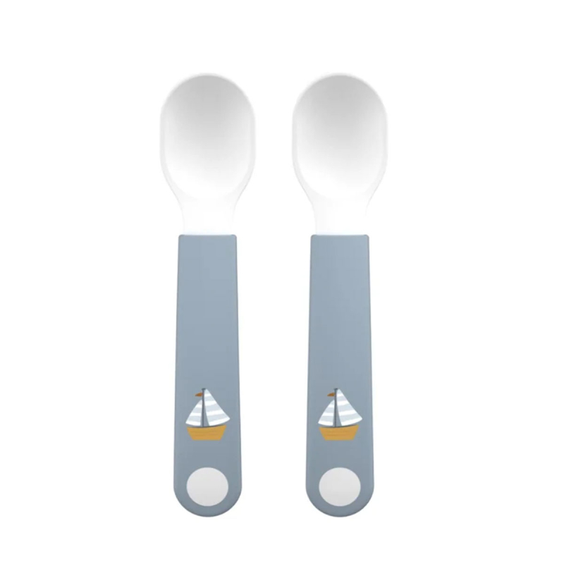 Κουτάλια από την εταιρεία Little Dutch σε μπλε χρώμα με λευκή λεπτομέρεια και καράβι στο σχέδιο. Είναι κατασκευασμένα από πολυπροπυλένιο απαλλαγμένο από BPA. Έχουν κοντή λαβή και είναι σχεδιασμένα για εύκολη χρήση από μικρά χέρια, παρέχοντας σταθερό κράτημα για να μην γλιστράει. Ιδανικά για να συνηθίσει το μικρό σας να τρώει μόνο του. Συνδυάστε τα με τα υπόλοιπα είδη της σειράς.