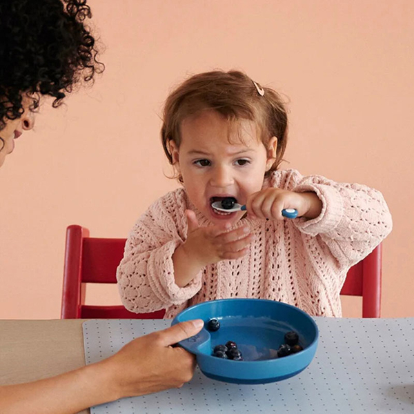 Κουτάλια από την εταιρεία Mepal σε μπλε χρώμα με λευκή λεπτομέρεια στο σχέδιο. Είναι κατασκευασμένα από πολυπροπυλένιο απαλλαγμένο από BPA. Έχουν κοντή λαβή και είναι σχεδιασμένα για εύκολη χρήση από μικρά χέρια, παρέχοντας σταθερό κράτημα για να μην γλιστράει. Ιδανικά για να συνηθίσει το μικρό σας να τρώει μόνο του. Συνδυάστε τα με τα υπόλοιπα είδη της σειράς.