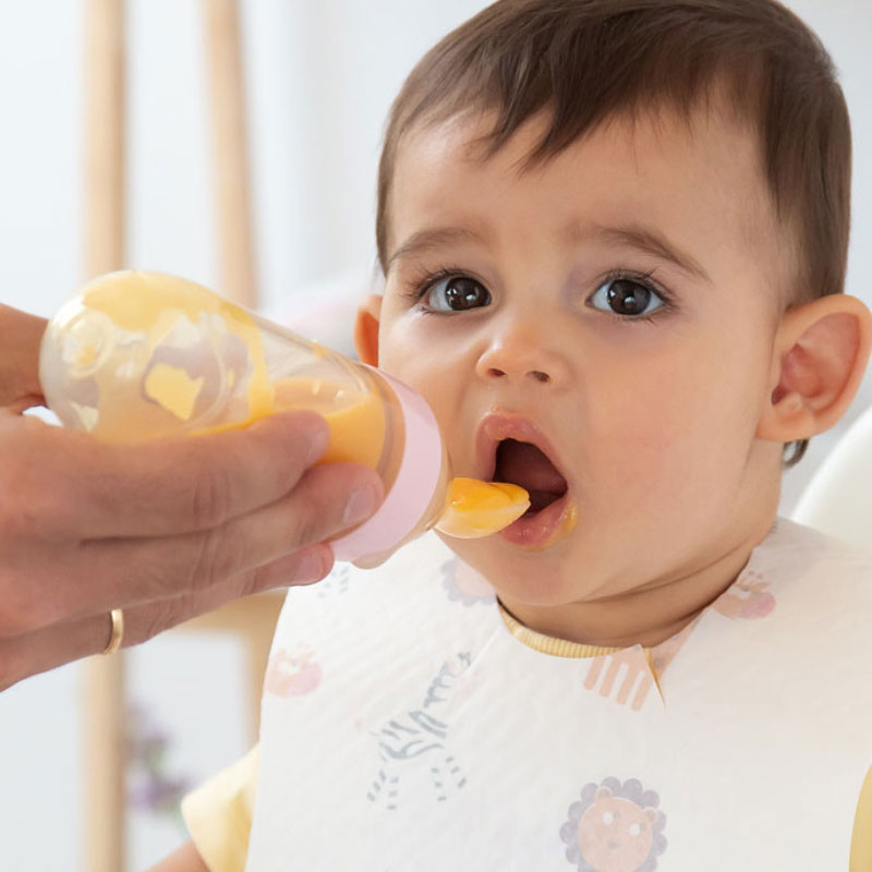 Τροφοδότης πολτοποιημένου φαγητού με κουτάλι από την εταιρεία Kiokids σε ροζ χρώμα. Είναι κατασκευασμένο από σιλικόνη ένα υλικό που δεν απορροφά οσμές ή γεύσεις. Επίσης, το σχήμα και η υφή της παραμένουν αναλλοίωτα με τη χρήση και την επαφή με άλλες ουσίες και είναι ανθεκτικό στις υψηλές θερμοκρασίες. Το δοχείο σιλικόνης σας επιτρέπει να τοποθετείτε το χυλό ή τον πουρέ στο ίδιο το κουτάλι ξεβιδώνοντάς το απλώς από τη βάση για γέμιση. Ασκώντας λίγη πίεση στο εύκαμπτο δοχείο βγαίνει η επιθυμητή ποσότητα φαγητού στο κουτάλι μέσω ενός μικρού σωλήνα. Αυτό το κουτάλι είναι χρήσιμο τόσο στο σπίτι όσο και εν κινήσει καθώς σας επιτρέπει να ταΐζετε το μωρό με το ένα χέρι και χωρίς να λερώνετε ή να χρειάζεται να μεταφέρετε οποιοδήποτε άλλο δοχείο. Το που έχει καπάκι σας επιτρέπει την ασφαλή μεταφορά. Κατάλληλο για ηλικίες 6 μηνών και άνω.