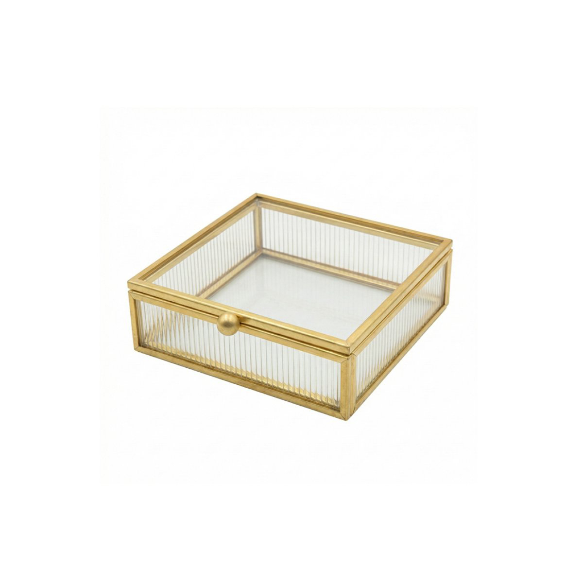 Κουτί αποθήκευσης με καπάκι από την εταιρεία Espiel. Έχει μοντέρνο σχεδιασμό. Είναι κατασκευασμένο από διάφανο γυαλί με χρυσό μεταλλικό σκελετό. Ιδανικό για θήκη κοσμημάτων και για να οργανώσετε τα μικροπράγματά σας.