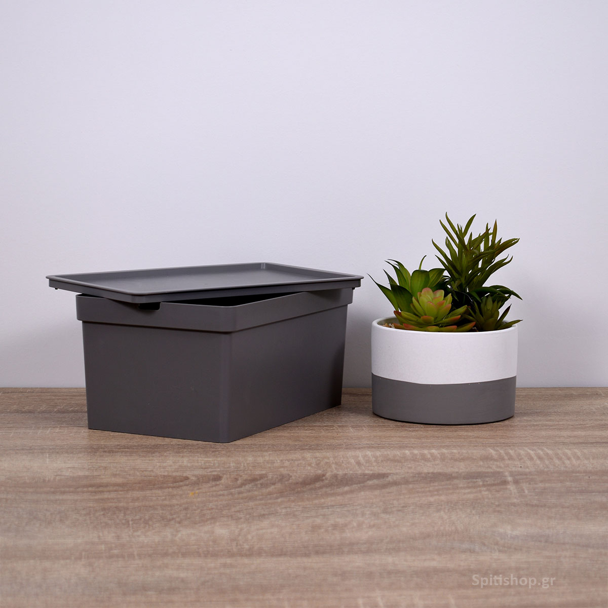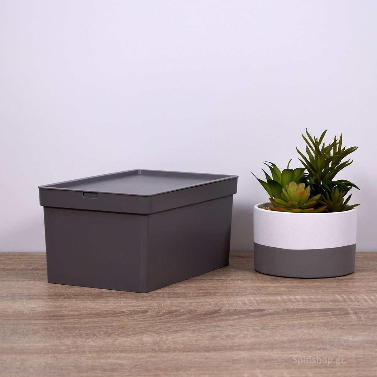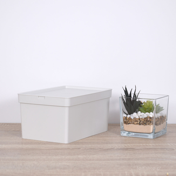 Κουτί αποθήκευσης 681-66 της εταιρείας Viomes, κατασκευασμένο από ανθεκτικό πλαστικό υλικό σε γκρι απόχρωση. Διαθέτει καπάκι ώστε να προστατεύεται το περιεχόμενο του και να μπορεί να στοιβαχτεί σταθερά το ένα κουτί πάνω στο άλλο. Είναι κατάλληλο για να αποθηκεύσετε ότι επιθυμείτε και να οργανώσετε διάφορα αντικείμενα καθημερινής και μη χρήσης. Ο διακριτικός και μίνιμαλ σχεδιασμός του το καθιστά ιδανικό για όλους τους χώρους σπιτιού όπως υπνοδωμάτια, μπάνιο, κουζίνα, σαλόνι και τραπεζαρία. Είναι ιδιαίτερα χρήσιμο και στα παιδικά δωμάτια, καθώς διαθέτει στρογγυλεμένες γωνίες. Συνδυάστε το με κουτιά Nova μεγαλύτερης διάστασης ή διαφορετικής απόχρωσης για ένα ολοκληρωμένο αποτέλεσμα. Τα προϊόντα Viomes είναι ελληνικής κατασκευής και εξαιρετικής ποιότητας.