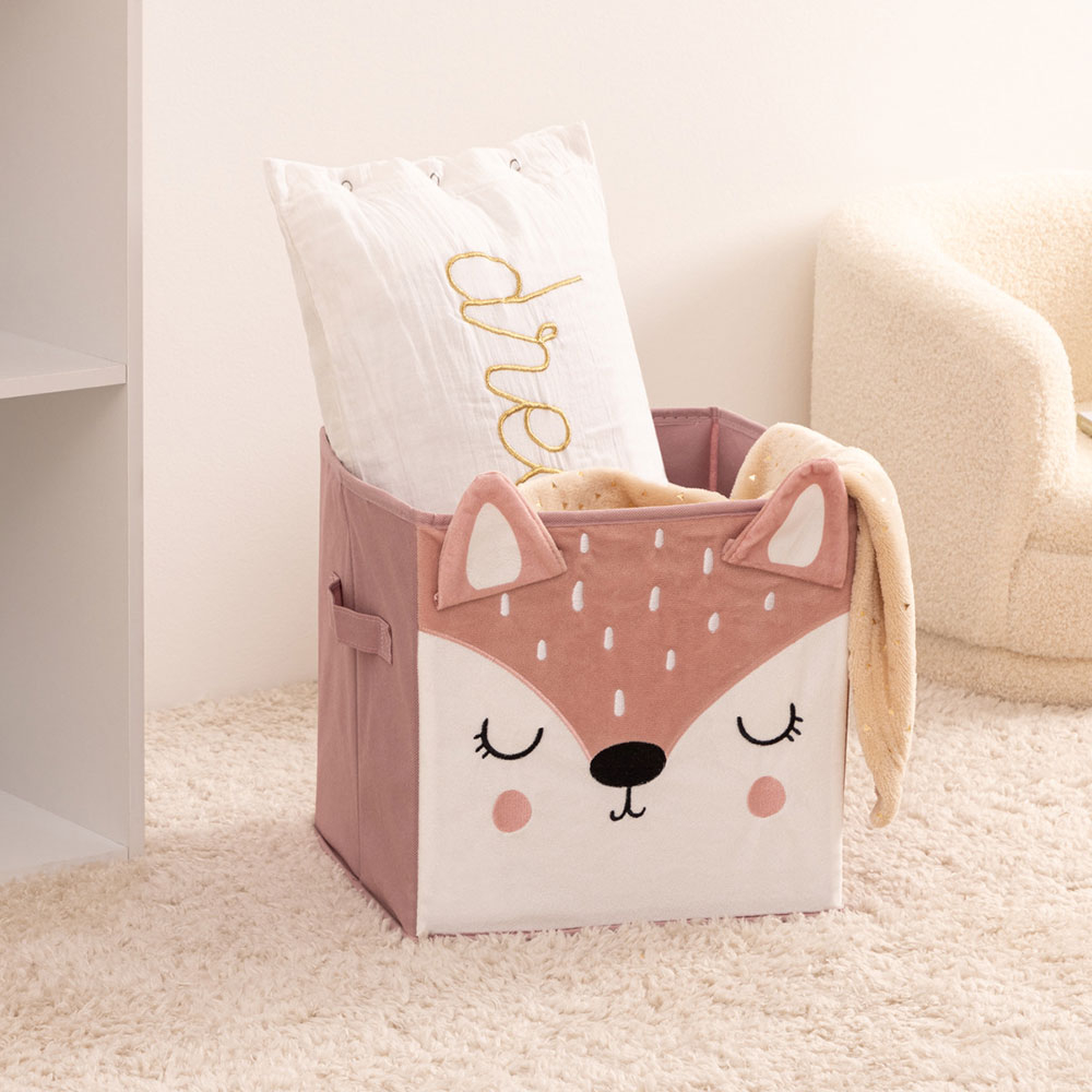 Κουτί αποθήκευσης για είναι πάντα τακτοποιημένο το παιδικό δωμάτιο. Εξωτερικά είναι υφασμάτινο σε ροζ χρώμα, κατασκευασμένο από πολυπροπυλένιο και σχέδιο ζωάκι. Εσωτερικά έχει χαρτόνι για να στέκεται χωρίς να λυγίζει ή να πέφτει. Με ένα πέρασμα του χεριού μπορεί η μικρή σας να το κάνει λευκό ή χρυσό ή να σχεδιάσει ότι μπορεί να φανταστεί!