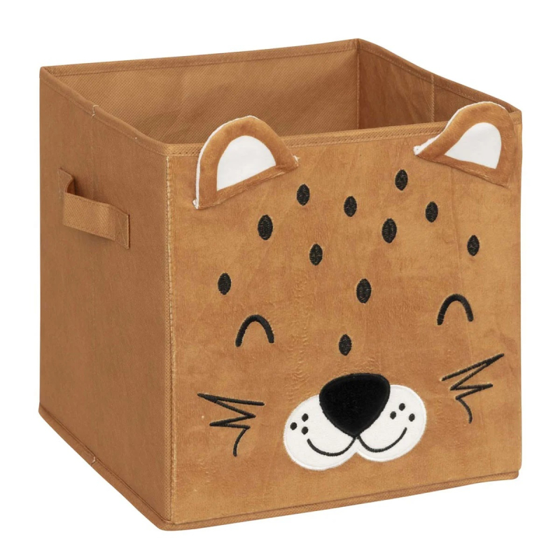 Κουτί αποθήκευσης για είναι πάντα τακτοποιημένο το παιδικό και βρεφικό δωμάτιο. Εξωτερικά έχει βελουτέ ύφασμα σε καφέ χρώμα με σχέδιο λεοπάρδαλης και διακοσμητικά αυτάκια. Εσωτερικά έχει χαρτόνι για να στέκεται χωρίς να λυγίζει ή να πέφτει. Θα χαρίσει ένα παιχνιδιάρικο ύφος στο δωμάτιο του παιδιού σας. Συνδυάστε το με τα υπόλοιπα είδη της ίδιας συλλογής για ένα ολοκληρωμένο αποτέλεσμα στο χώρο σας.