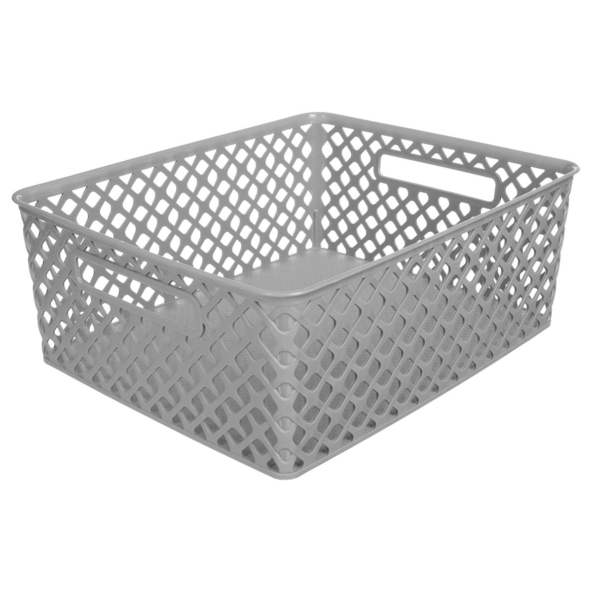 Καλάθι αποθήκευσης μεγάλο με διάτρητη επιφάνεια γκρι χρώμα. Είναι κατασκευασμένο από πλαστικό υλικό και διαθέτει χερούλια για εύκολη μεταφορά. Ιδανικό καλάθι για όλα τα δωμάτια του σπιτιού, για να τακτοποιήσετε μικροαντικείμενα ή παιχνίδια στο παιδικό δωμάτιο. Χωρητικότητα 11 Lt.